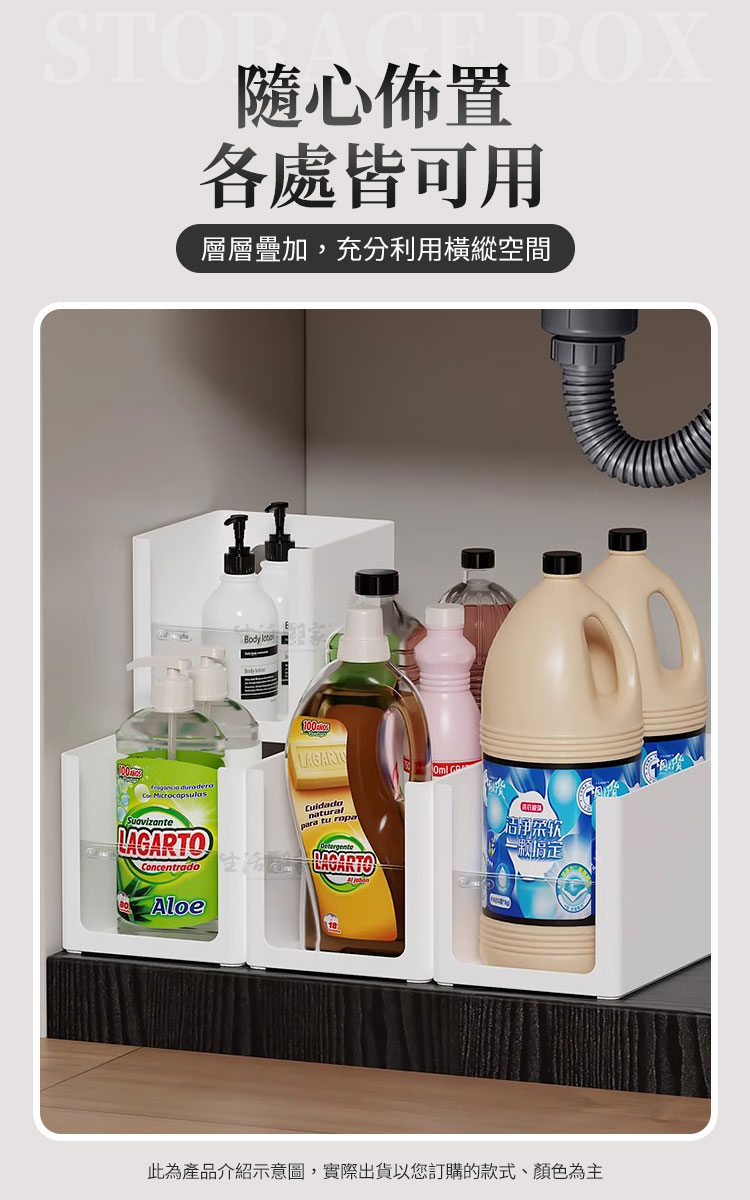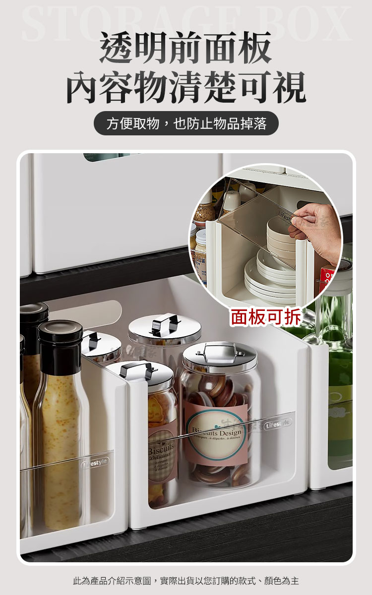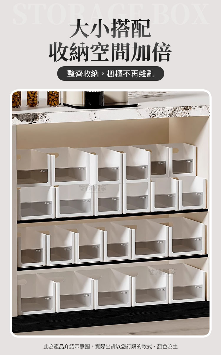 讓收納更剛好、剛剛好 🧺✨生活采家 櫥櫃收納盒|櫥櫃整理大師,居家空間翻倍瓶瓶罐罐、零食雜物,常常堆滿櫃子卻不好拿取?🙈 生活采家全新【櫥櫃收納盒】來解決你的煩惱!無論是廚房醬料、浴室清潔劑、臥室化妝品,甚至辦公小物,都能輕鬆收納,讓生活從此整齊有序。直角設計剛剛好,完美貼合櫥櫃或牆面,零死角利用空間,擺放時不留縫、不浪費每一寸收納潛力!不論是小瓶罐、調味料、保健品還是文具,都能妥善安置。✅ 正反兩用設計:上櫃可朝外開口,方便找物;下櫃可用把手抽拉,取物更省力。✅ 透明前面板:一眼看清內容物,省去翻找時間,還能防止物品掉落。✅ ABS厚實材質:耐磨抗摔,使用壽命更長,不怕日常頻繁抽拉。✅ 堆疊組合靈活:四種尺寸選擇,可自由搭配堆疊,空間利用翻倍。✅ 多場景適用:廚房瓶罐、浴室清潔、臥室化妝桌、櫥櫃雜物,一盒多用。💡 使用後你會發現~有了這款收納盒,你的櫥櫃將徹底改頭換面!不再因找不到物品而浪費時間,不再因物品傾倒而煩惱。每一次打開櫃門,迎接你的是井然有序的空間。這不僅是收納,更是生活質感的提升。🌿現在就入手【生活采家 櫥櫃收納盒】,享受「空間翻倍 × 整齊有序」的居家體驗!不論是送給自己,或作為家庭小禮物,都是最佳選擇。數量有限,快把整齊美學帶回家吧!#生活采家 #櫥櫃收納盒 #廚房收納神器 #居家整理 #收納好物📣 FAQ (常見問答)Q1:這款收納盒可以堆疊使用嗎?A1:可以!支腳卡位設計,堆疊穩固不傾倒,讓收納空間加倍。Q2:收納盒的透明面板能拆下來嗎?A2:能!透明面板可折卸,清洗方便,取物也更靈活。Q3:適用哪些場景?A3:廚房瓶罐、浴室清潔、臥室化妝品、書房雜物,都能整齊收納。Q4:材質耐用嗎?會不會容易裂?A4:採用厚實ABS材質,耐磨抗摔,經久耐用。Q5:有幾種尺寸可以選?A5:共4種規格(淺櫃大號、深櫃大號、深櫃大號加寬、加深櫃大號加寬加深),可依需求搭配。注意事項:1.選購前請先測量櫥櫃空間,確認尺寸是否合適。2.請勿放置超過耐重範圍的物品,以免影響使用壽命。3.透明面板可拆卸,請避免強行拉扯以免變形。4.避免靠近高溫火源,請置於陰涼乾燥處。5.定期擦拭保持清潔,確保透明面板清晰可視。