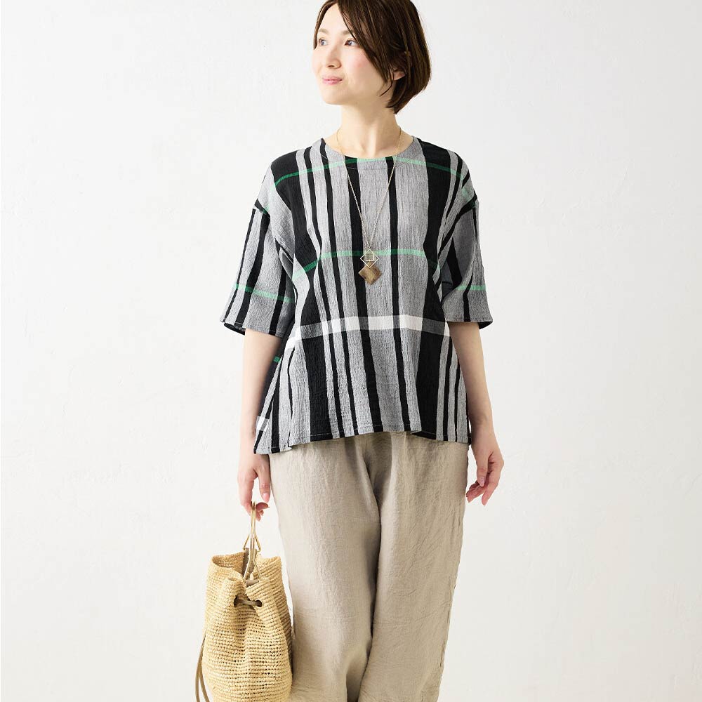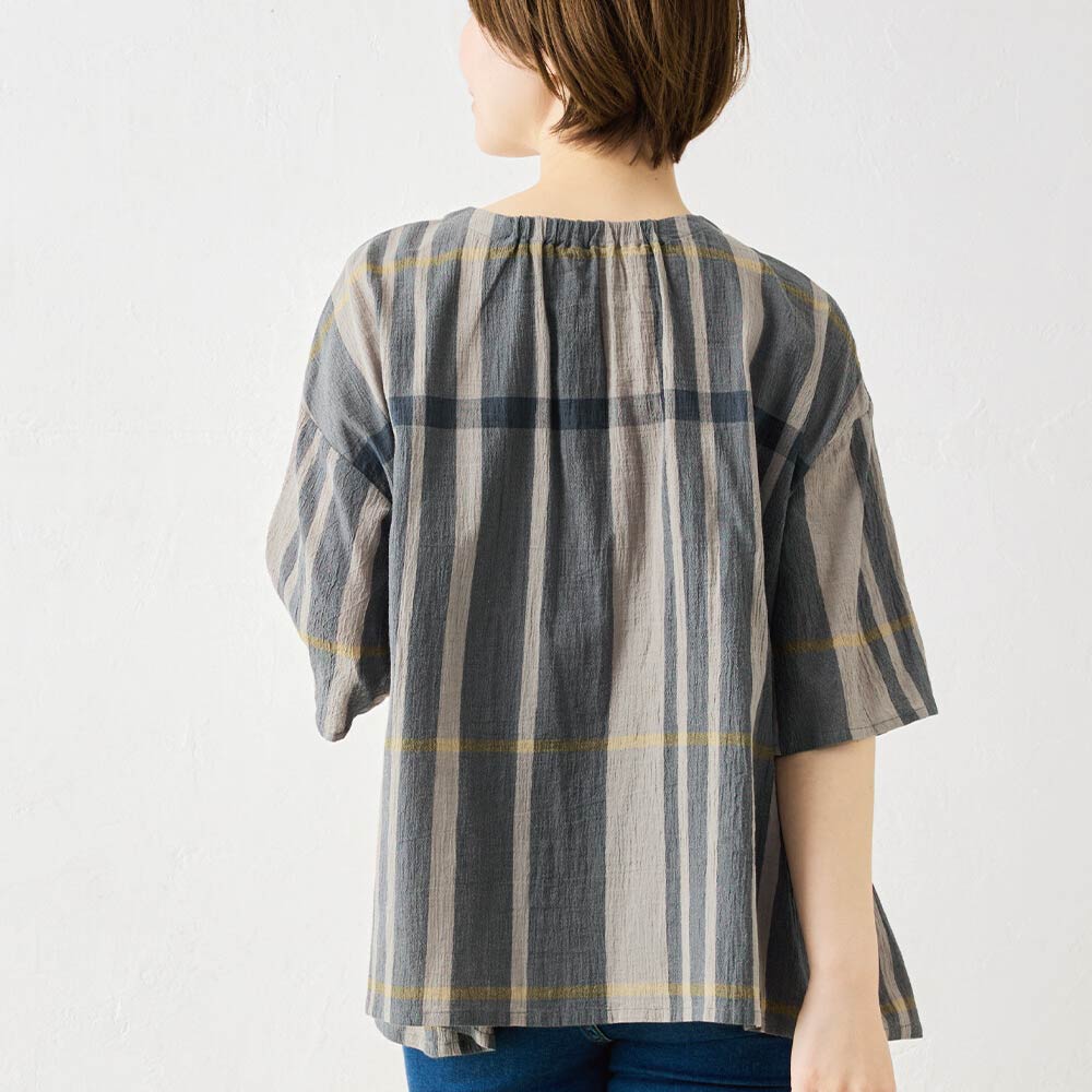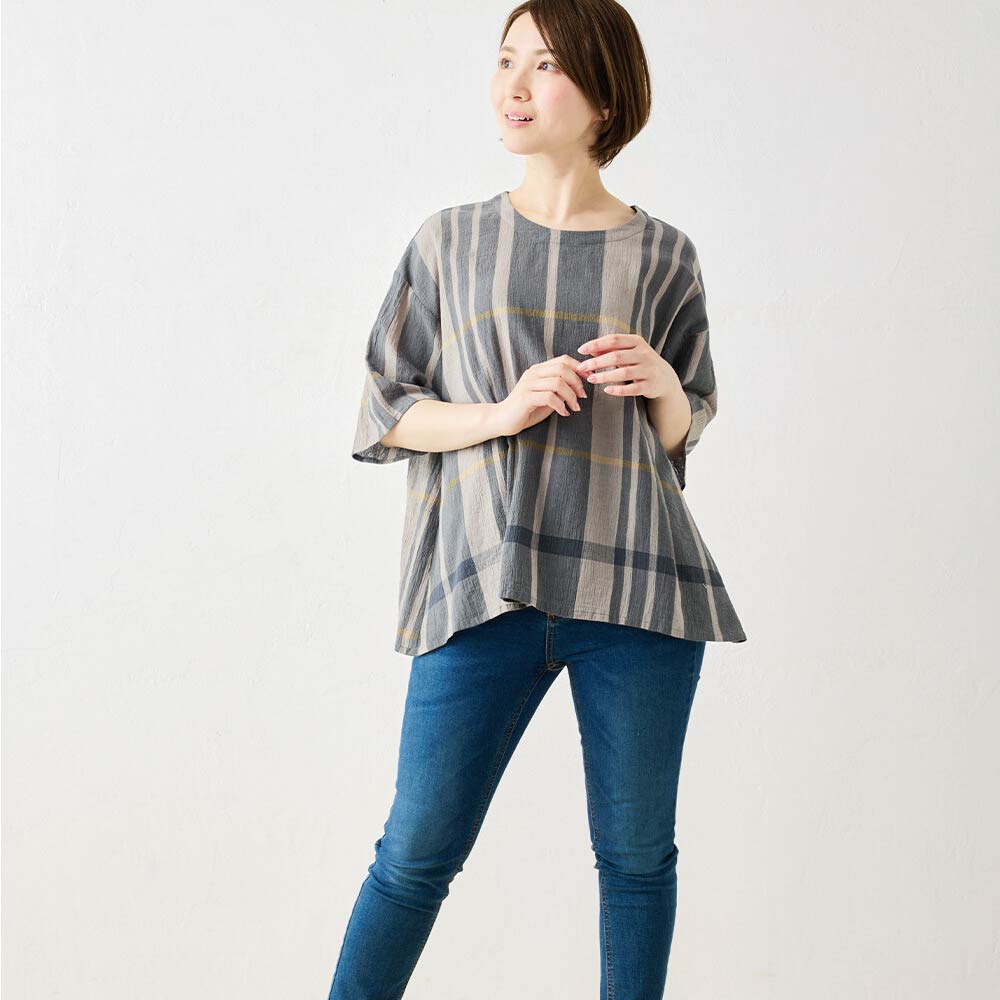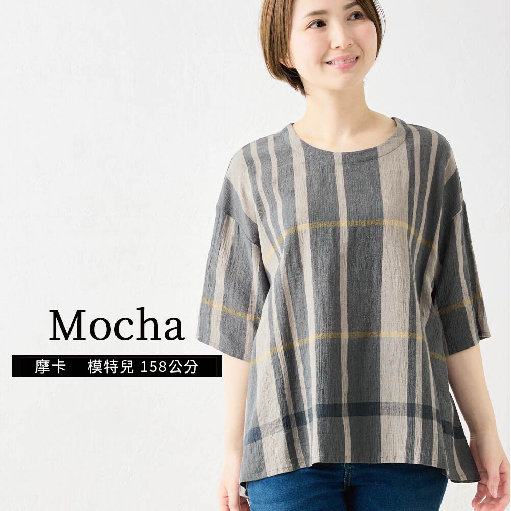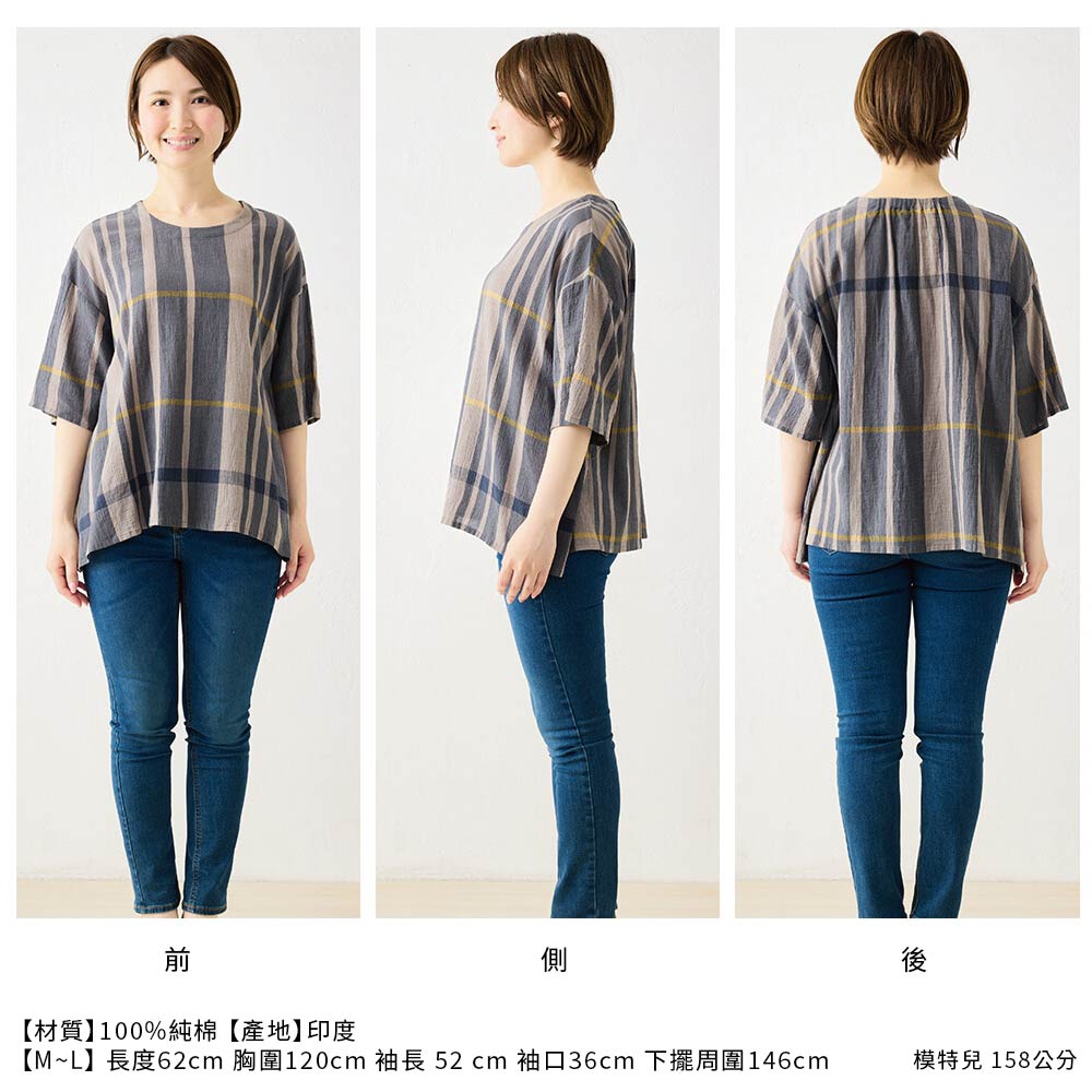 日本【SHONAGON】印度棉格紋上衣ふっくらソフトな肌触りのインド綿ビッグチェックプルオーバー通気性と吸水性に優れているので暑い夏でもベタつかず、快適に過ごせます。程よい厚みで透け感もなく、ロングシーズン着用できるのも魅力。柔軟蓬鬆的印度棉大格紋套頭衫透氣性和吸收性極佳,即使在炎熱的夏天也能保持舒適,不會感覺黏膩,適合一年四季穿著。【材質】100%純棉【M~L】長度62cm胸圍120cm袖長 52 cm袖口36cm下擺周圍146cm【產地】印度SNG-12276495MM 摩卡 M-LSNG-12276495YM 碳灰 M-L