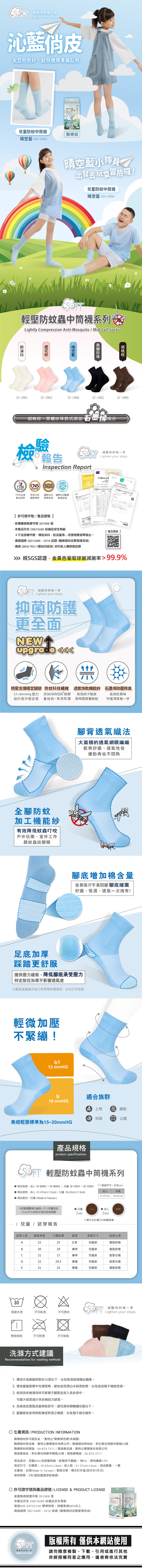 【醫碩科技】SOFT 醫療級 輕壓柔軟舒適防蚊襪 兒童款 晴空藍