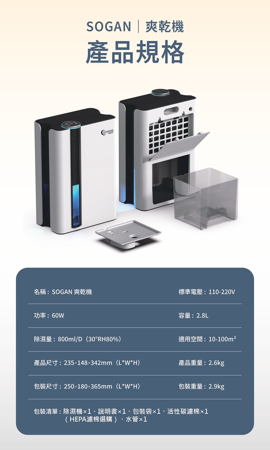 主打 靜音除濕+空氣淨化+輕巧移動 三合一設計,