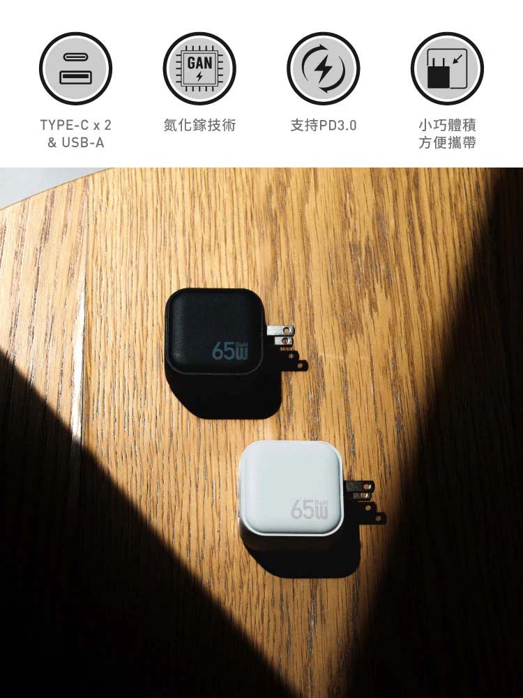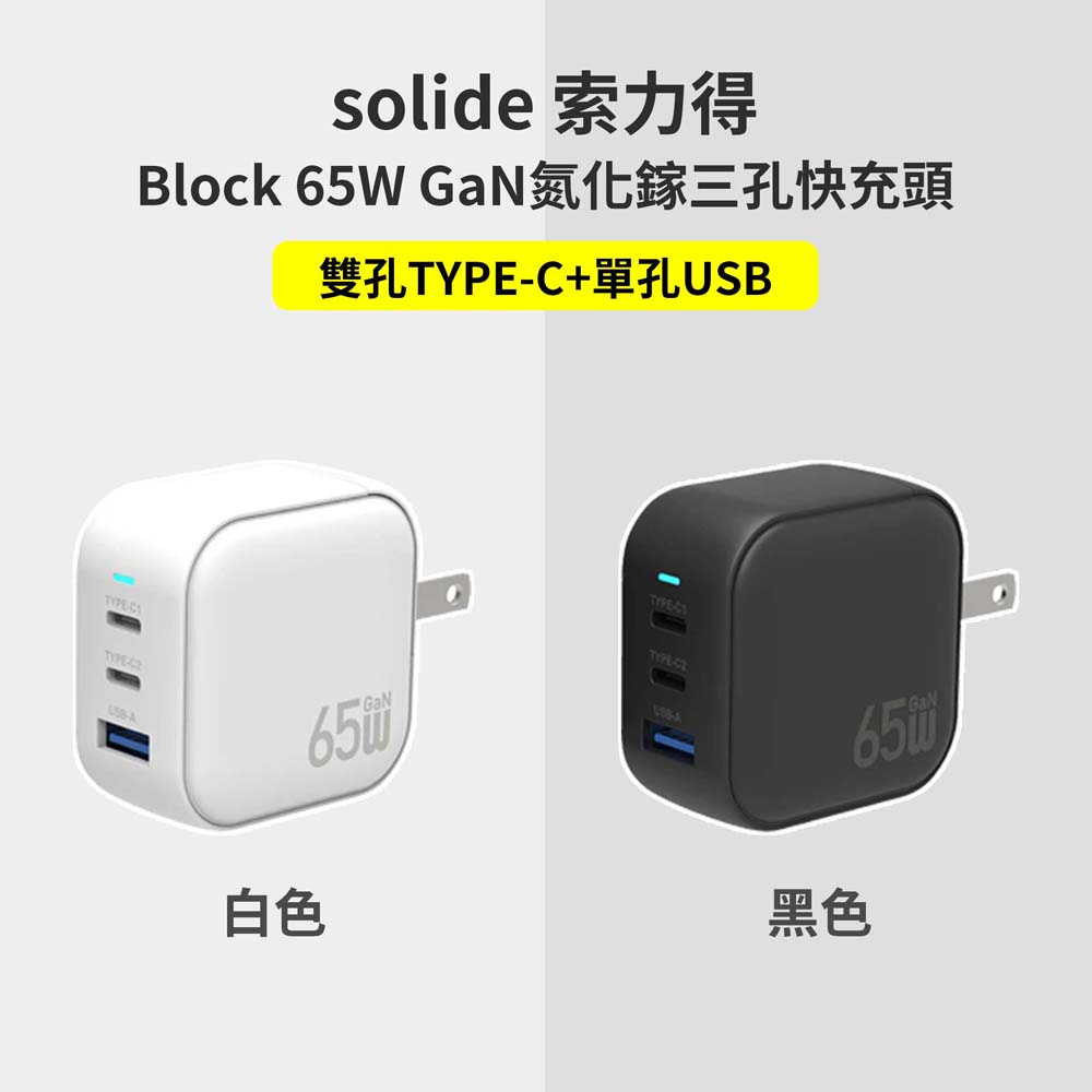 【山水之寶】Block 65W GaN氮化鎵三孔快充頭 快速充電 快充插頭 急速充電-白色