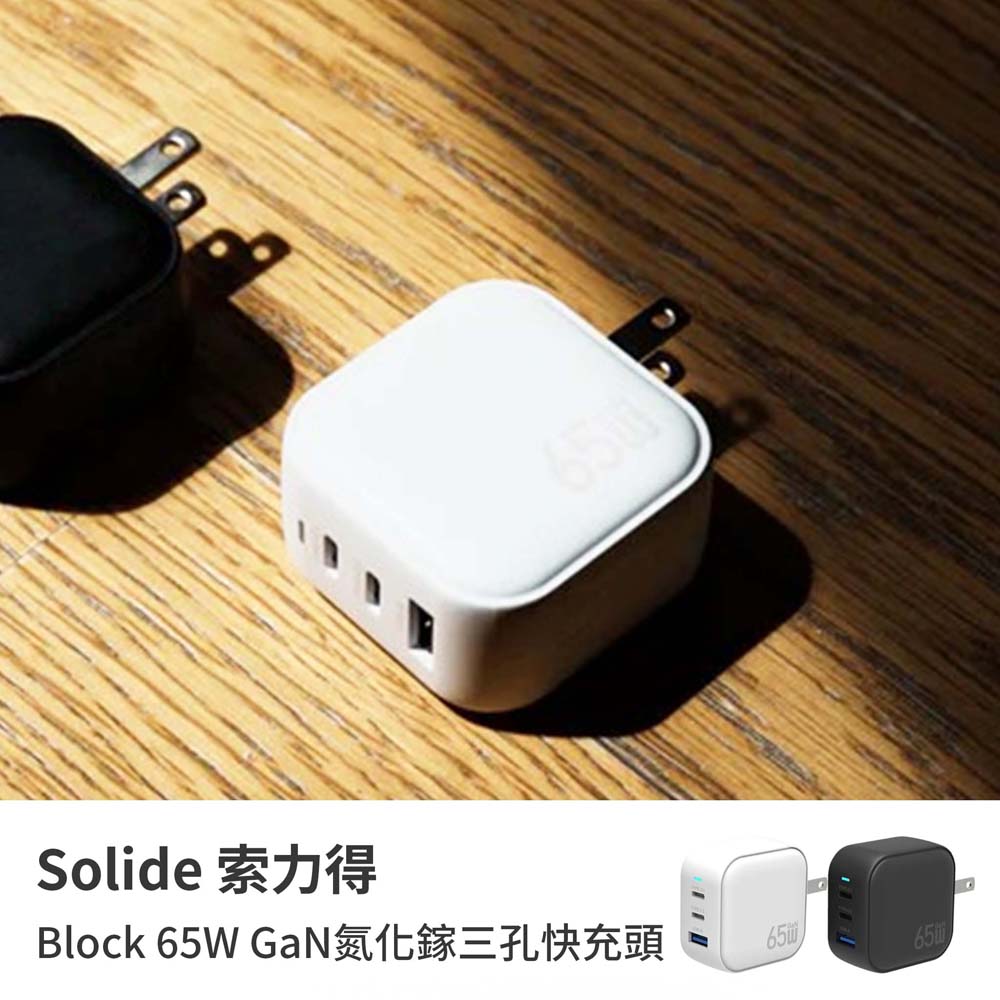 【山水之寶】SOLiDE 索力得 Block 65W GaN氮化鎵三孔快充頭 快速充電 快充插頭 急速充電-黑色