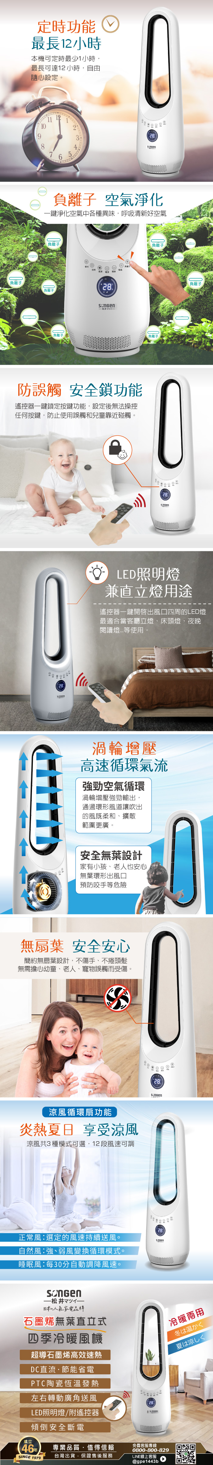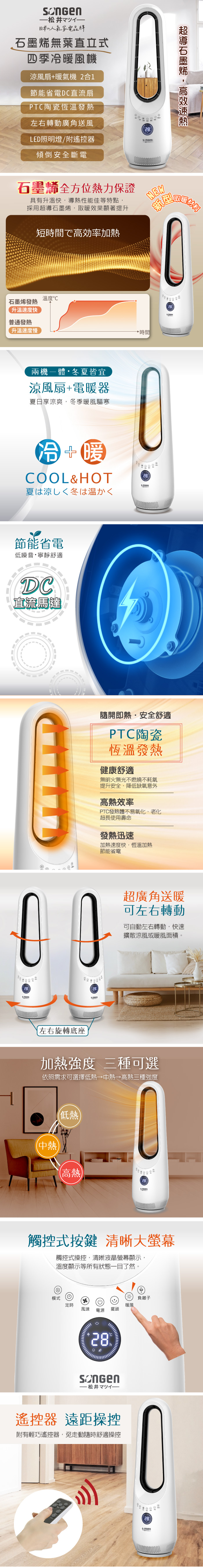 【SONGEN松井】松井石墨烯無葉直立式四季冷暖氣機/電暖器/DC扇/循環扇(SG-215ACW )