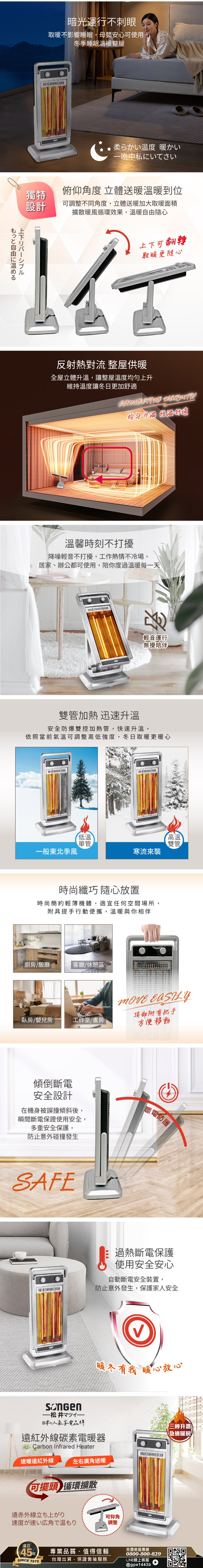 【SONGEN松井】日系遠紅外線可擺頭雙溫控碳素電暖器/暖氣機(SG-D1121TY)