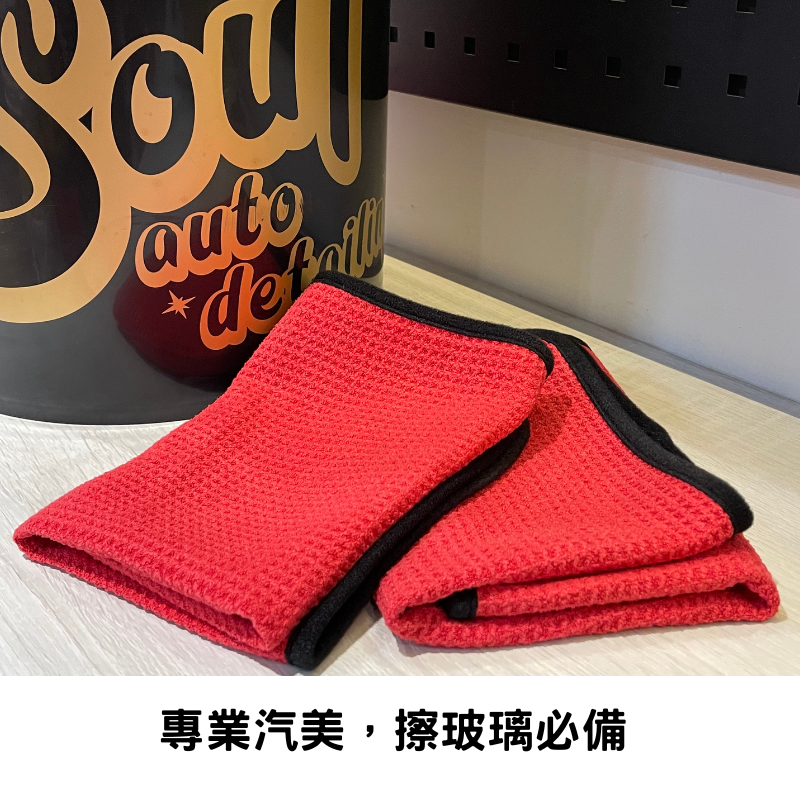 【Soul】華夫格玻璃布 40x40cm 專業洗車巾3入組 吸水無痕 (紅色)