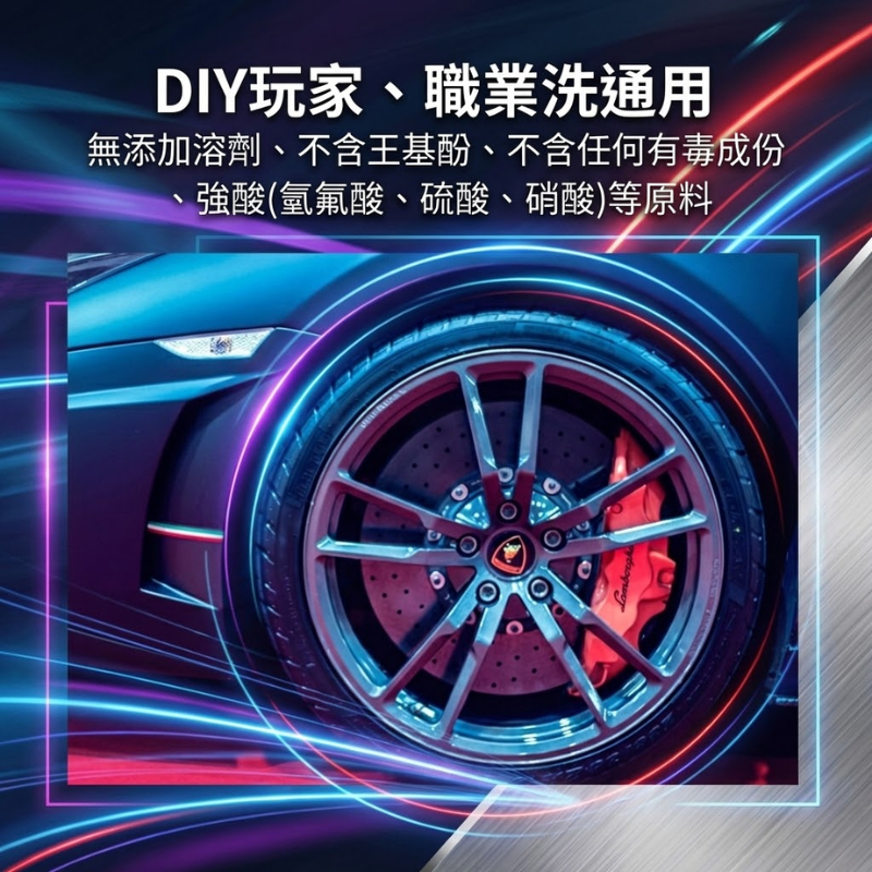 廣泛適用多種車型:不僅適用於汽車特殊烤漆與鋼圈,亦完美適用於重型機車、電動機車 (如 Gogoro)、自行車等精密部件清潔。