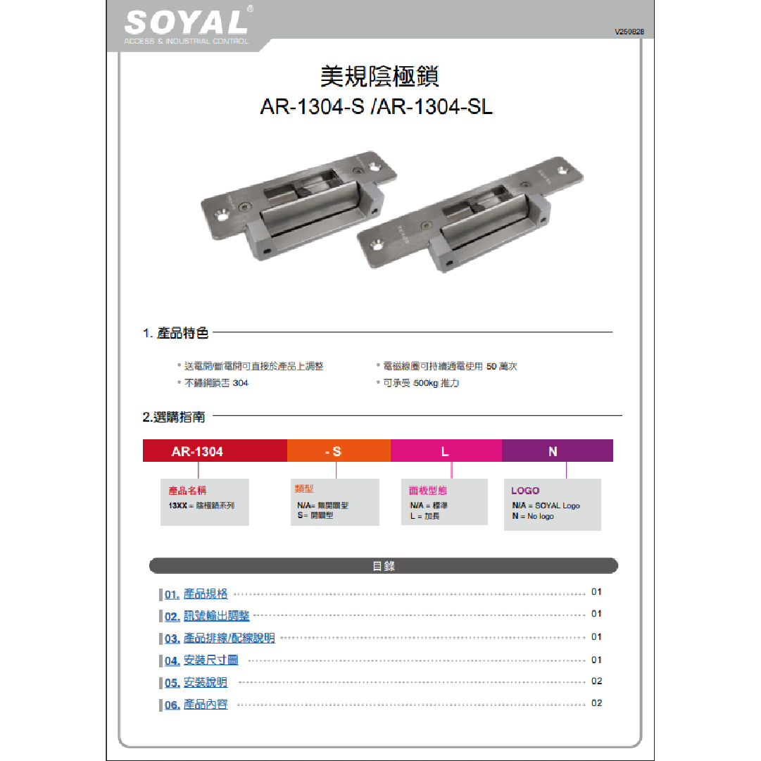 昌運監視器 SOYAL AR-1304-S 美規陰極鎖 門鎖 喇叭鎖 水平手把鎖