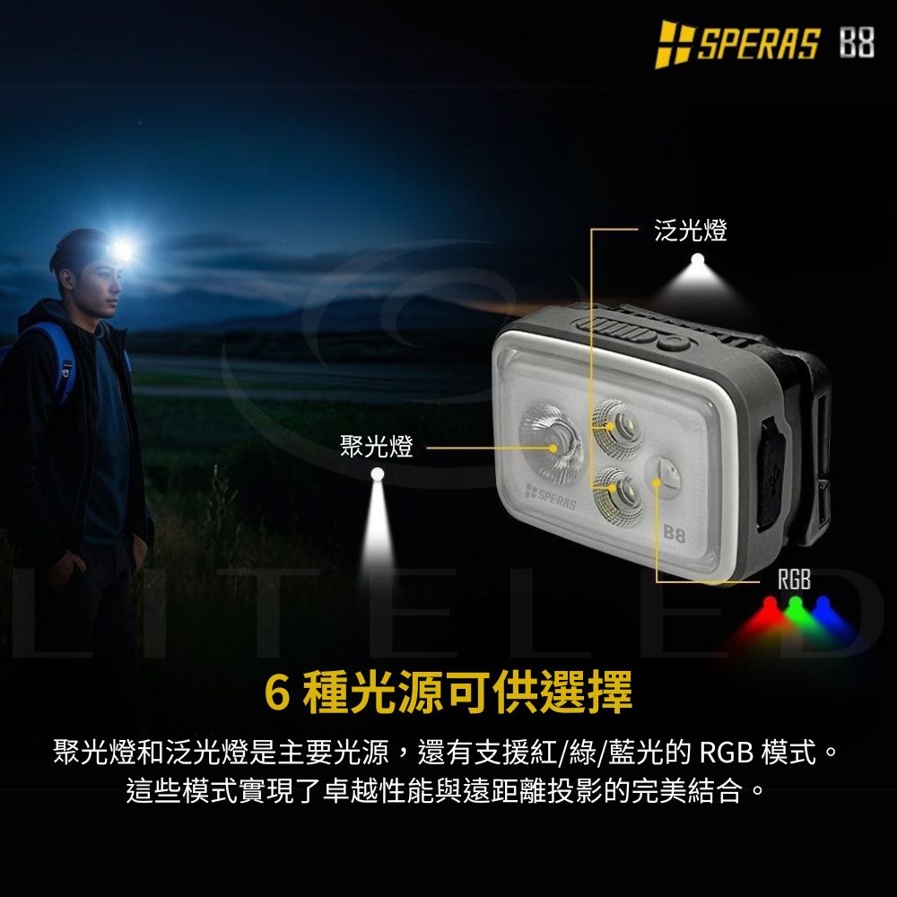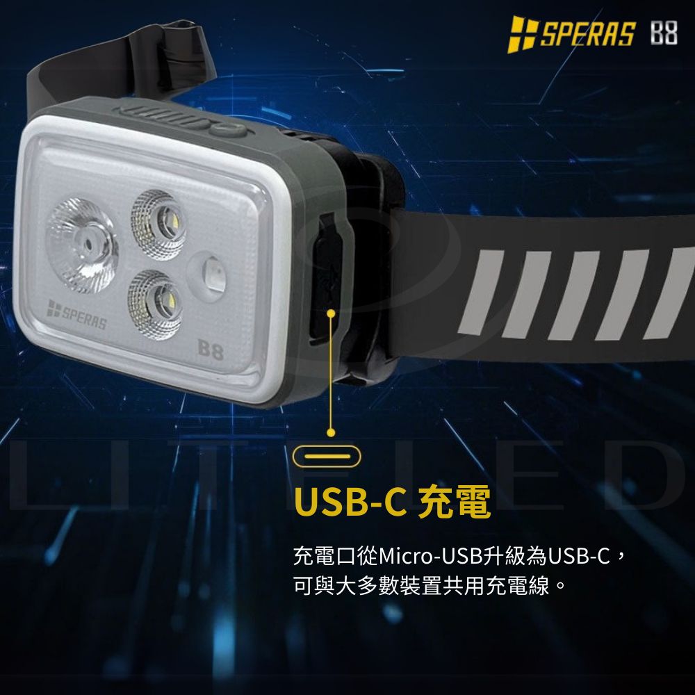 【錸特光電】SPERAS B8 多光源充電頭燈