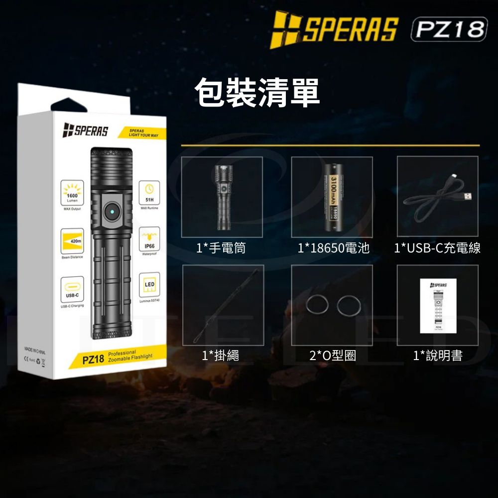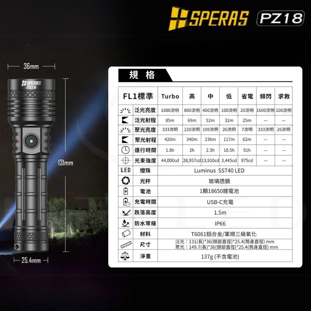 【錸特光電】SPERAS PZ18 變焦戰術手電筒