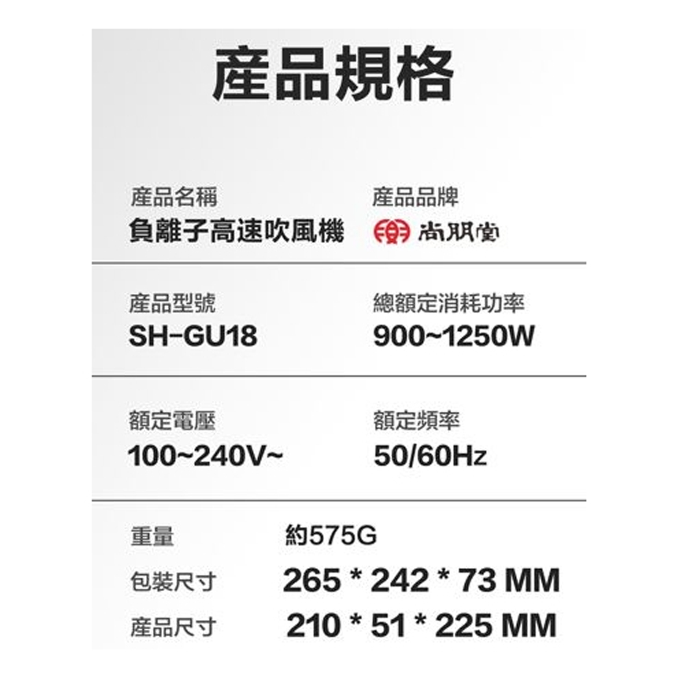 SPT 尚朋堂 負離子高速吹風機 SH-GU18