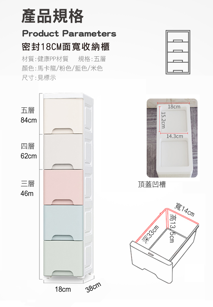 ★上方置物格設計,收納輕鬆好幫手★安全封邊,承重力強,堅固超耐用★防脫落式抽屜,安全抽取不易滑落★繽紛馬卡龍色系,居家受納好幫手產品尺寸:請參考內文圖示產品材質:環保PP塑料 產品顏色:馬卡龍色/粉色/藍色/卡其色組裝方式:DIY組裝注意事項: ▲ 本產品為DIY商品,組裝前請先檢查 如有瑕疵請在24小時內回報,組裝後恕不接受退貨。▲ 配送地點僅止於台灣本島,外島地區(澎湖、金門、馬祖、綠島、小琉球)無提供服務,敬請見諒。 ▲ 若現貨已出完則需預購追加,需等待7-10個工作天到貨,貨到1-3天內會儘速為您寄出。 ▲ 因拍攝光線角度與每台螢幕調色都不同,照片與實物難免有出入,對於色差、質感非常敏感的買家請考慮清楚再購買。 ▲ 如有任何對商品的問題可撥打客服專線詢問,避免產生購物過程不愉快交易! ▲ 溫馨提醒,鑑賞期非試用期, 敬請確認商品無瑕庛問題並確認購買後再使用。▲商品需退換貨時必須為寄出時完整狀態(商品本身、配件包裝、外箱),商品有組裝後痕跡及任何破損皆無法受理退貨。★注意:編鄉地區需多收運費,離島地區因運送品質問題沒有提供配送例如:澎湖.金門。。。。。#收納櫃 #隙縫收納櫃 #邊櫃 #斗櫃 #五層櫃 #廚房收納櫃 #衛浴收納櫃 #廁所收納櫃 #廚房收納 #衛浴收納 #廁所收納 #衣櫃 #衛浴置物櫃 #面紙盒 #面紙架 #置物櫃 #兒童收納 #收納箱 #衣物收納箱 #衣物收納櫃 #隙縫櫃 #隙縫箱 #衣物收納 #現貨 #收納箱 #免運 #格調 #抽屜櫃 #抽屜收納櫃 #抽屜置物櫃 #抽屜塑膠櫃https://s-cf-tw.shopeesz.com/file/tw-11134208-7r98o-lkoxji4xyurka6https://s-cf-tw.shopeesz.com/file/tw-11134208-7r98o-lkoxji4xyv274fhttps://s-cf-tw.shopeesz.com/file/tw-11134208-7r98o-lkoxji4y09c0d2https://s-cf-tw.shopeesz.com/file/tw-11134208-7r98o-lkoxji4y1nwg83https://s-cf-tw.shopeesz.com/file/tw-11134208-7r98o-lkoxji4y32gw99https://s-cf-tw.shopeesz.com/file/tw-11134208-7r98o-lkoxji4y4h1cd2https://s-cf-tw.shopeesz.com/file/tw-11134208-7r98o-lkoxji4y5vlsafhttps://s-cf-tw.shopeesz.com/file/tw-11134208-7r98o-lkoxji4y7a6855https://s-cf-tw.shopeesz.com/file/tw-11134208-7r98o-lkoxji4y8oqo54https://s-cf-tw.shopeesz.com/file/tw-11134208-7r98o-lkoxji4ya3b45ehttps://s-cf-tw.shopeesz.com/file/f13c44dacac7de4ffa77bd3fc97c8ddbhttps://s-cf-tw.shopeesz.com/file/f984efceca9d4dc18c11c6c9c5f51543
