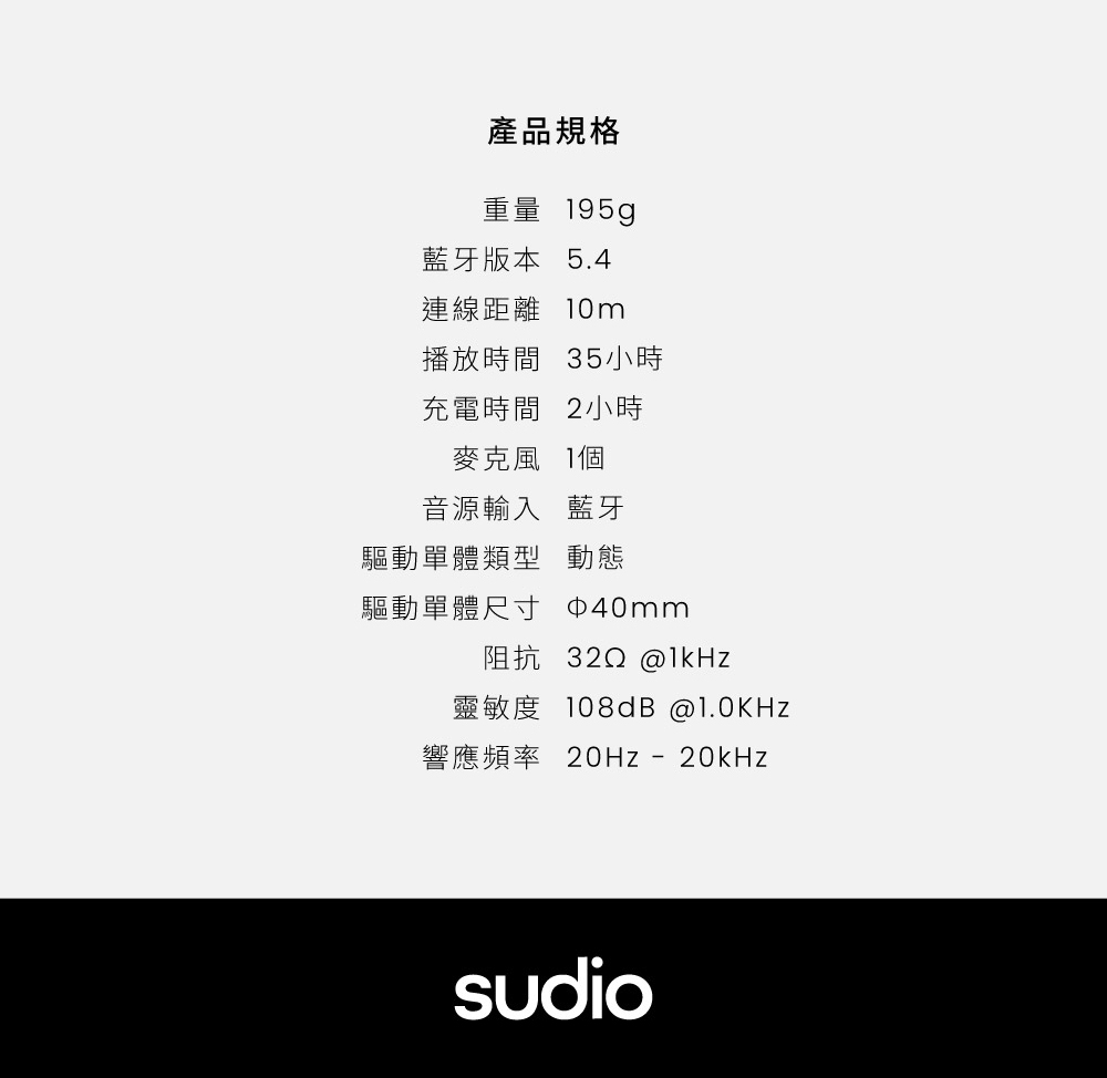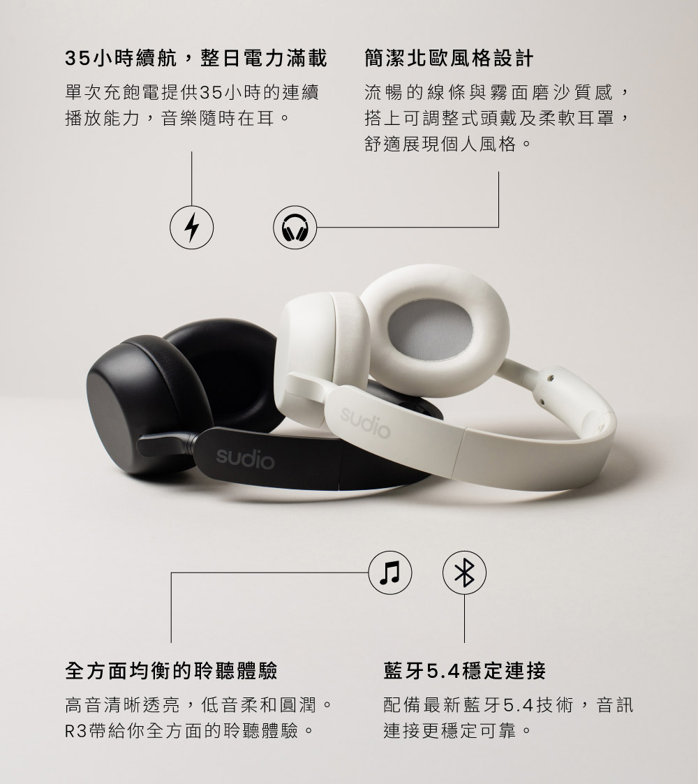 ■品牌︰瑞典■型號:SUDIO R3■保固:一年保固,到貨7日內線上登錄享共18個月保固■貨源:原廠公司貨■重量:195g■藍牙版本:藍牙5.4■連線距離︰10公尺■充電時間︰2小時■播放時間:35小時■麥克風︰1個■音源輸入︰藍牙■驅動單體型態:動態■驅動單體尺寸︰40mm■阻抗:32 Ohm■靈敏度:108dB■響應頻率:20 Hz - 20 kHz■防水係數︰無■NCC認證碼:CCAF24LP1710T3■BSMI︰R38900~2027.07.08■包裝/內含配件︰R3耳罩式藍牙耳機、充電線、產品說明書*注意事項︰*民法第259條第六項:【買家一旦拆封使用後】應返還之物有毀損、滅失或因其他事由,致不能返還者,應償還其價額,我方將會酌收相應費用。1. 此商品為個人貼身用品,拆封後不做退換貨。7天鑑賞期內若要退換貨,須把商品恢復原狀。否則將會酌收10%~30%整新費!2. 退貨商品之包裝及內容物均須完整無破損,否則恕無法接受退換貨3. 產品顏色會因網頁呈現而有些許差異,以收到實品為準