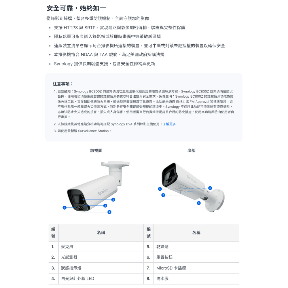 昌運監視器 Synology群暉 BC800Z 4K AI 智慧混合光可變焦攝影機