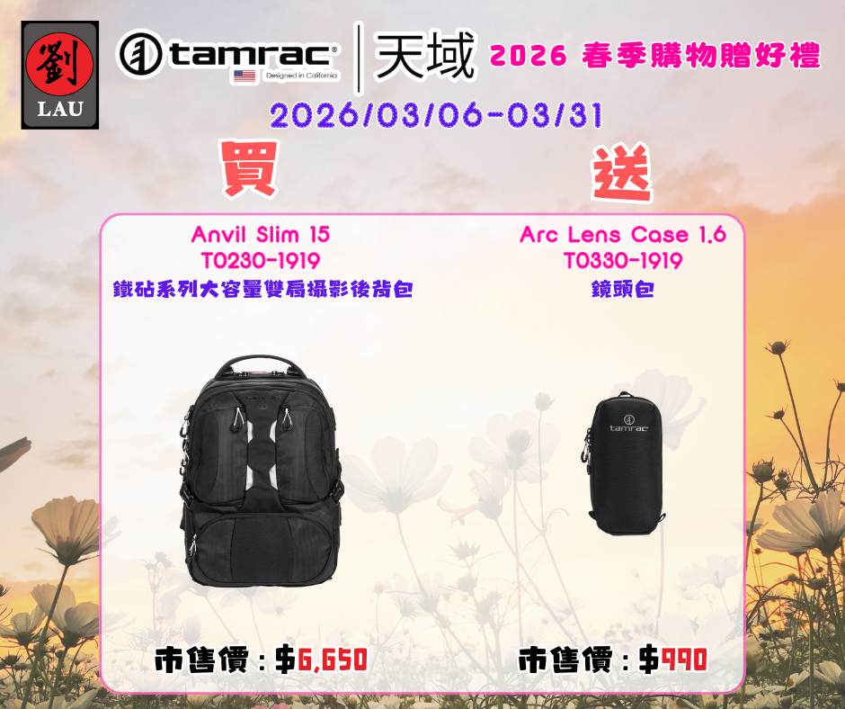 202603 春季買就送活動(2026/03/06-03/31)[劉氏國際]Tamrac Anvil Slim 15 T0230-1919 鐵砧系列雙肩後背攝影包