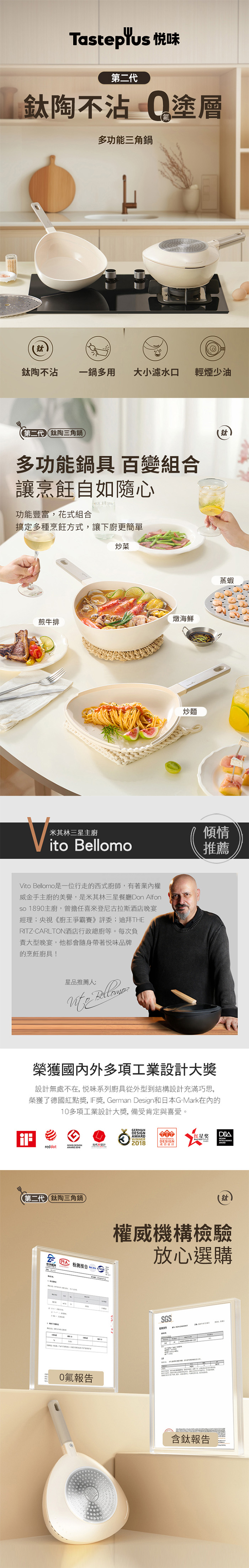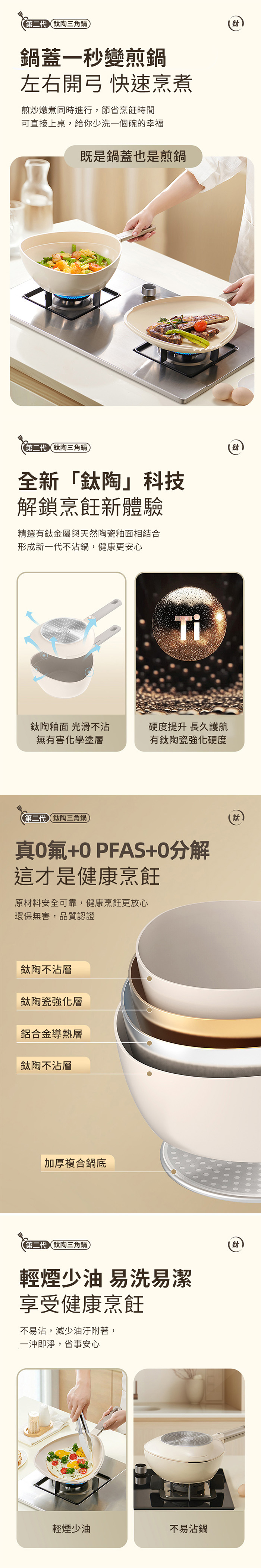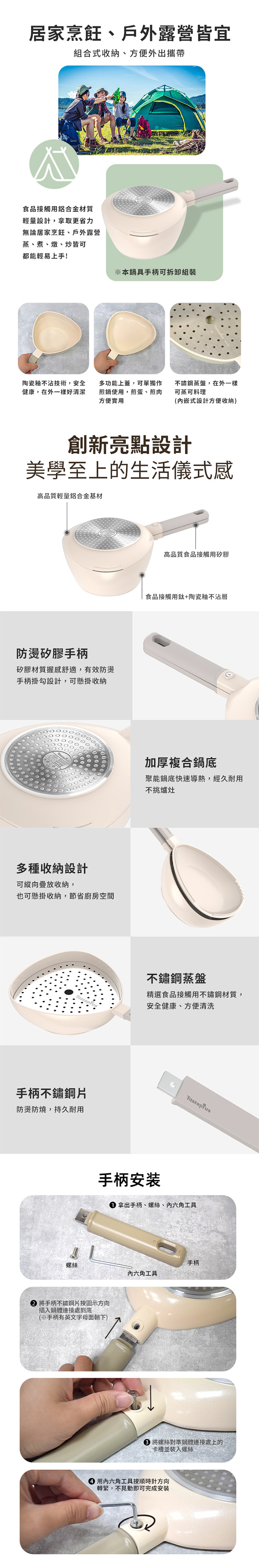 【Taste Plus】悅味元素 小資露營 居家 三角鍋 鈦+陶瓷不沾鍋 上下雙鍋組 18cm IH全對應(贈蒸盤)-珍珠白