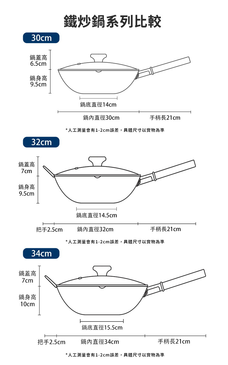 產品尺寸:鍋內直徑32cm,含蓋總高15.7cm,總長55.6cm(手量誤差±5%)