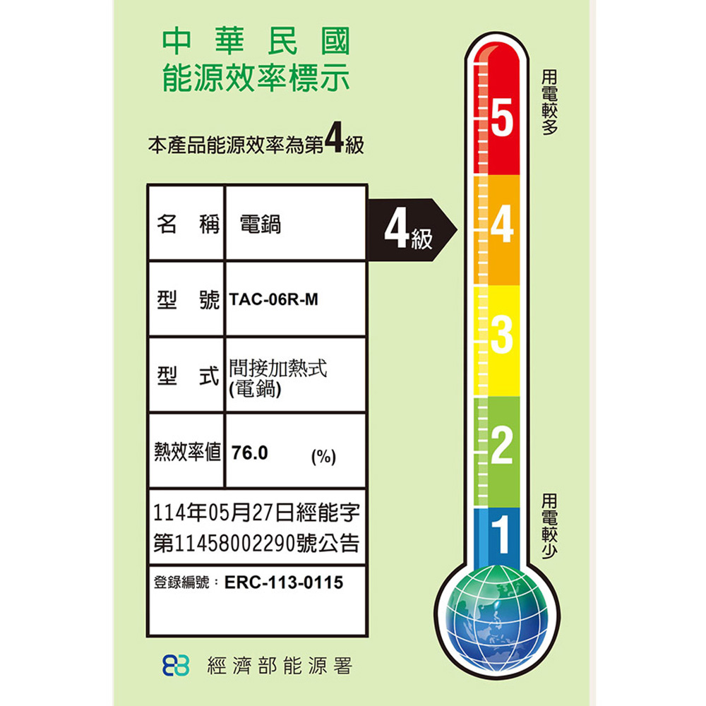 TATUNG大同 6人份櫻桃紅不鏽鋼配件電鍋 TAC-06R-MR