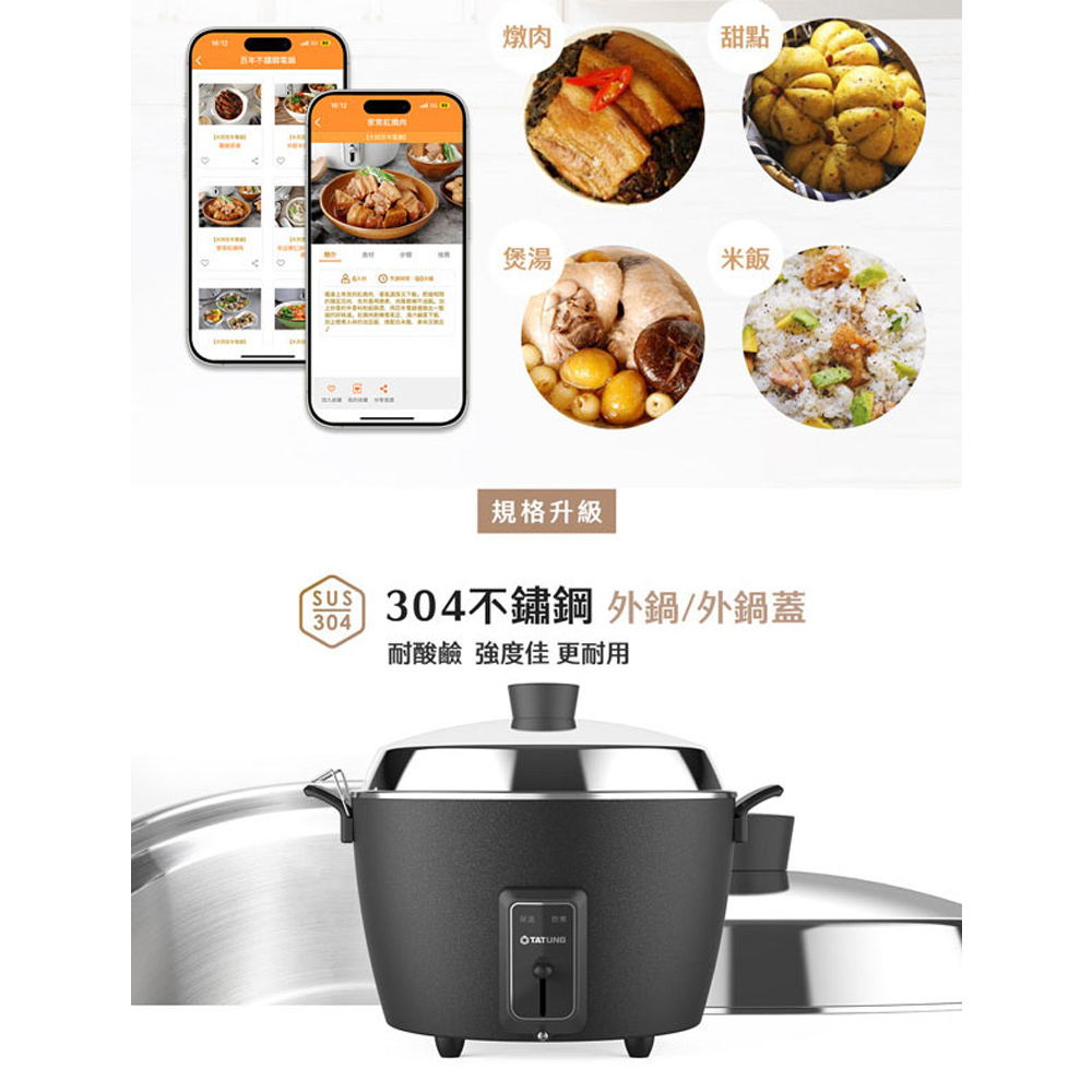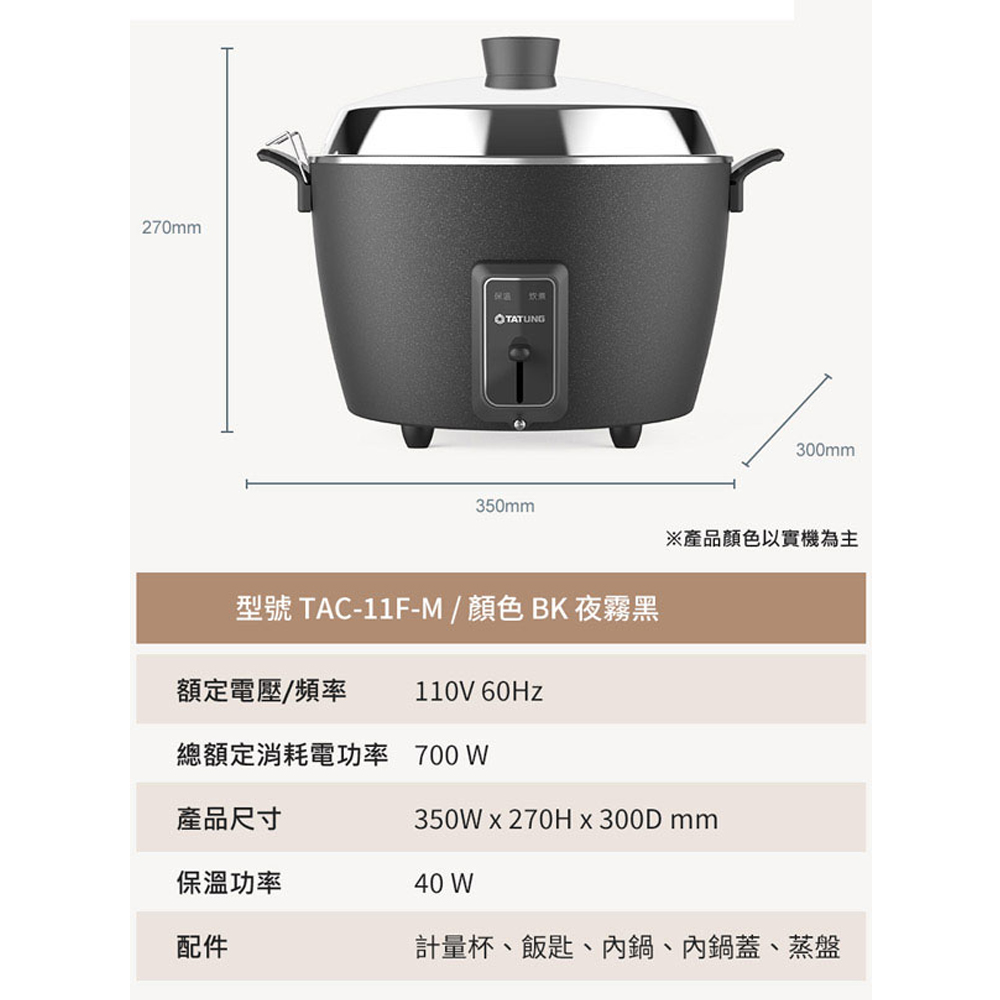 TATUNG大同 11人份夜霧黑不鏽鋼配件電鍋 TAC-11F-MBK