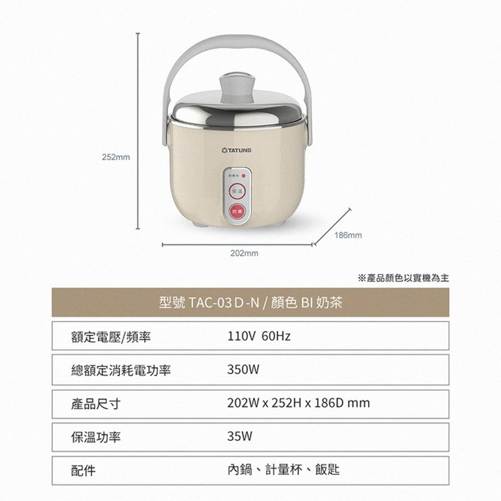 TATUNG 大同 3人份 奶茶色 不鏽鋼配件電鍋 TAC-03D-NBI