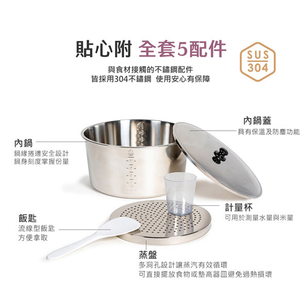 ★配件:內鍋、內鍋蓋、蒸盤、計量杯、飯匙