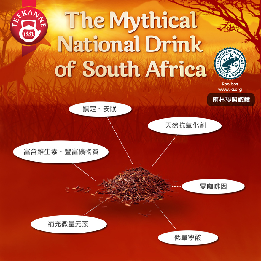【商品特色 】✔️ 德國百年暢銷知名品牌✔️ 不含添加糖及人工添加劑✔️ 無咖啡因、低單寧酸✔️ 天然抗氧化劑✔️ 富含維生素、礦物質及微量元素✔️ 鎮定、幫助睡眠✨ 博士茶來自於南非特產針葉紅木是當地最受歡迎的飲品 ✨🍵 香橙風味博士茶香橙風味博士茶帶有宜人溫和與果味的口感。以溫潤的國寶茶為基底結合成熟甜美多汁的橙子精製而成,淡雅的味道帶有果物的刺激感,入口可以清晰地感受到柑橘及茶味的絕妙層次,是一款新穎獨特風味的茶飲。🍵 經典原味博士茶原味博士茶自然溫和略带堅果的味道與天然的甜味,来自南非經日曬乾燥,純度100%的博士茶,保留了數百年以來的原始風味,Rooibois Pure原味博士茶的最佳選擇 !博士茶種植在開普敦附近陽光充足的Cederberg山坡上,深深紮根於當地的文化,被珍視爲南非的國寶飲品 。👍🏻 Rooibos天然不含咖啡因, 許多人喜歡將它作爲紅茶或咖啡的替代品。想試試Rooibos茶拿鐵嗎?只需將Rooibos茶包浸泡5-8分鐘,加入溫熱的牛奶沖泡,攪拌後即可享用 !🍵 焦糖風味博士茶甜美的焦糖與南非博士茶完美的結合,濃郁的牛奶糖香氣,甜而不膩,散發出誘人的甜美芳香,讓人回味無窮,添加牛奶後更別有一番風味。【 商品規格 】・品牌 :TEEKANNE 恬康樂・原產地 :德國・有效期限 :標示於包裝上(西元 年/ 月/ 日)・保存期限 :4年・過敏原 :無・保存方法 :本產品請常溫保存在陰涼乾燥處,避免陽光直射或潮濕。・成分 :博士茶。・內容量 :1.75g x 20入/ 盒・淨重 :35克・尺寸 :寬7 x 長13 x 高8 cm・國內負責廠商 :誠品生活股份有限公司⚠ 注意事項※ 產品顏色可能會因網頁呈現與拍攝關係產生色差,圖片僅供參考,商品依實際供貨樣式為準。※ 產品文案若有變動敬請參照實際商品為準。※ 上述規格若有錯誤,請以原廠所公布資料為主