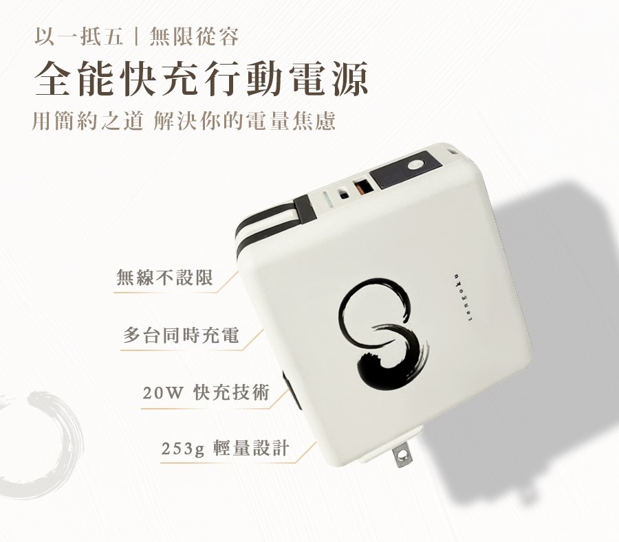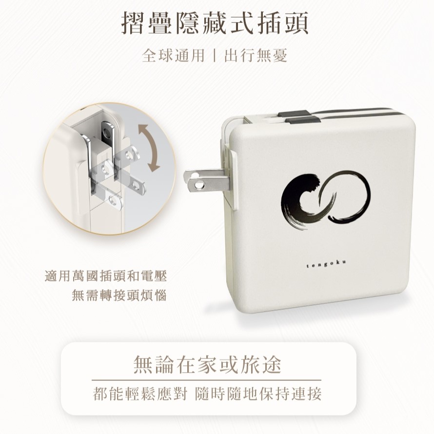 內建雙線:自帶Type-C與Lightning線,免額外攜帶。