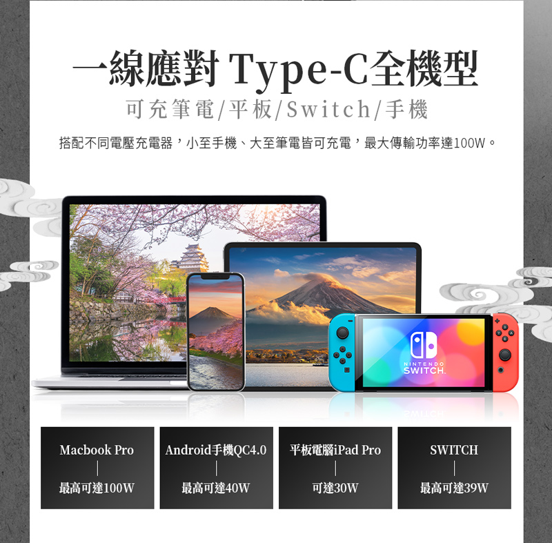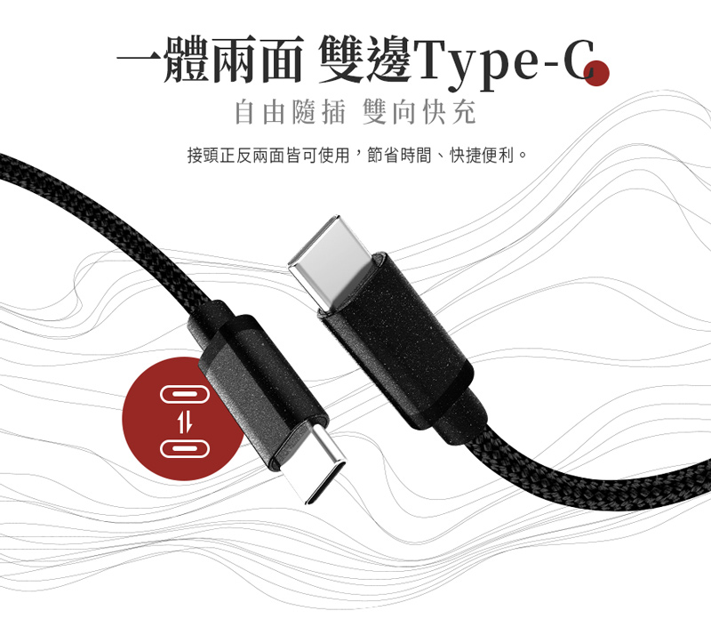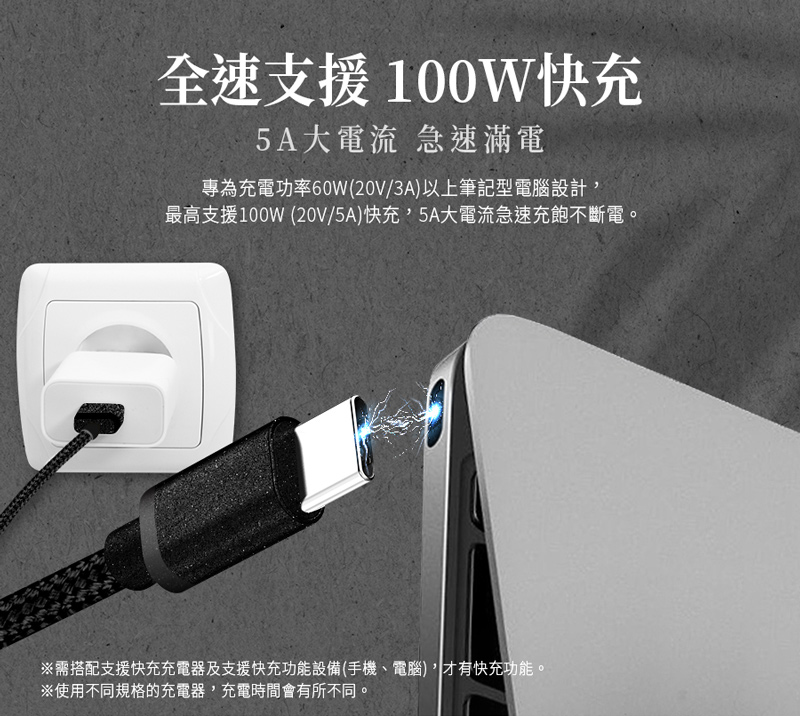 【tengoku天閤堀】PD 100W USB-C to USB-C 1m編織快充傳輸線