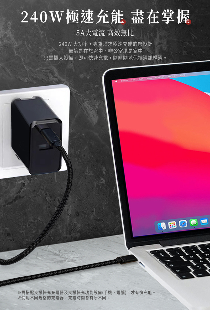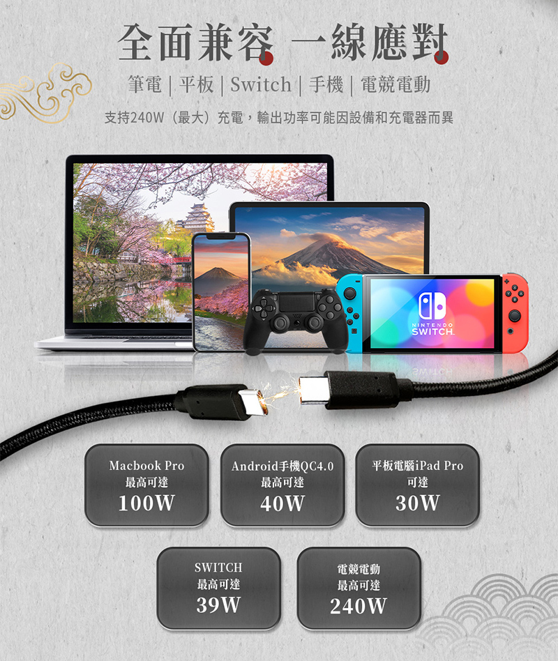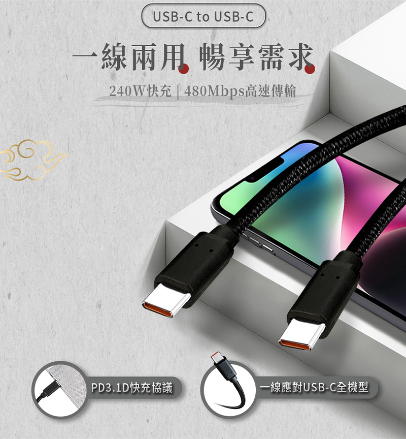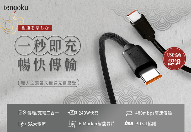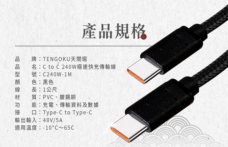 【tengoku天閤堀】C to C 240W極速快充傳輸線