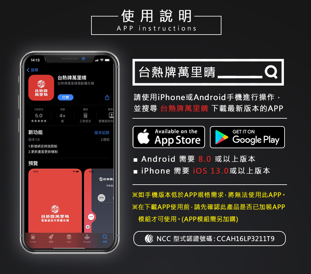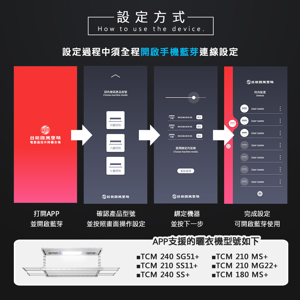 【TEW台熱牌】萬里晴 藍芽APP/電動遙控升降曬衣機(TCM-210-SS11+)(頂級尊爵款)(附基本安裝)
