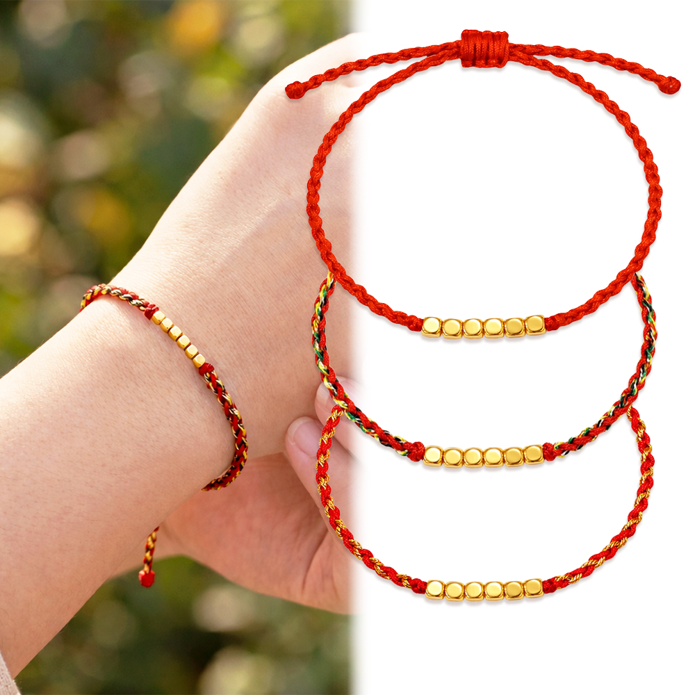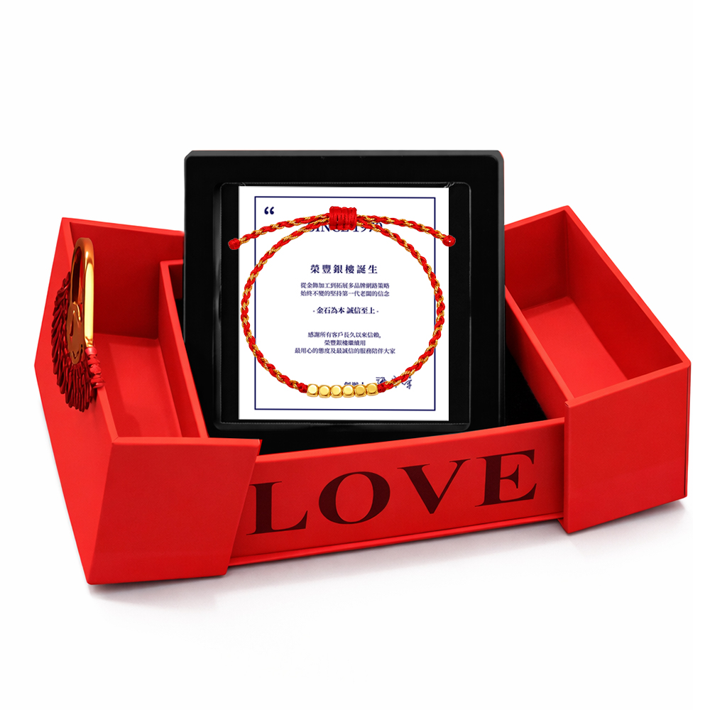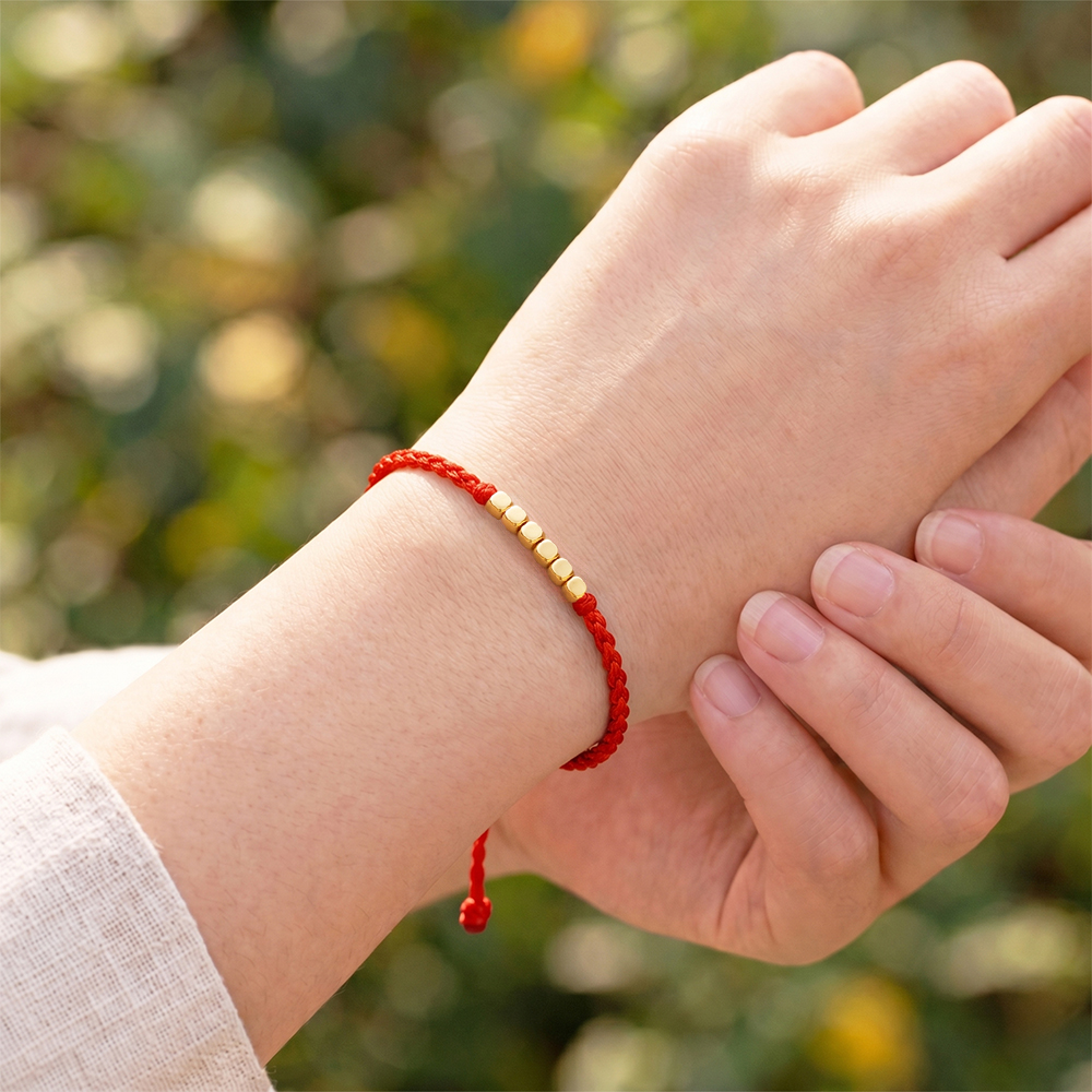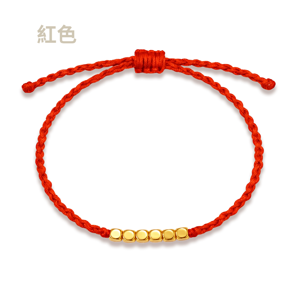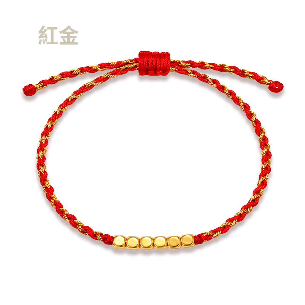 重量:黃金約重0.03錢±0.01材質:純金+紅繩尺寸:如實品;手繩周長約為15cm,可自由調節配件:包裝盒x1、保證卡x1、手提袋x1