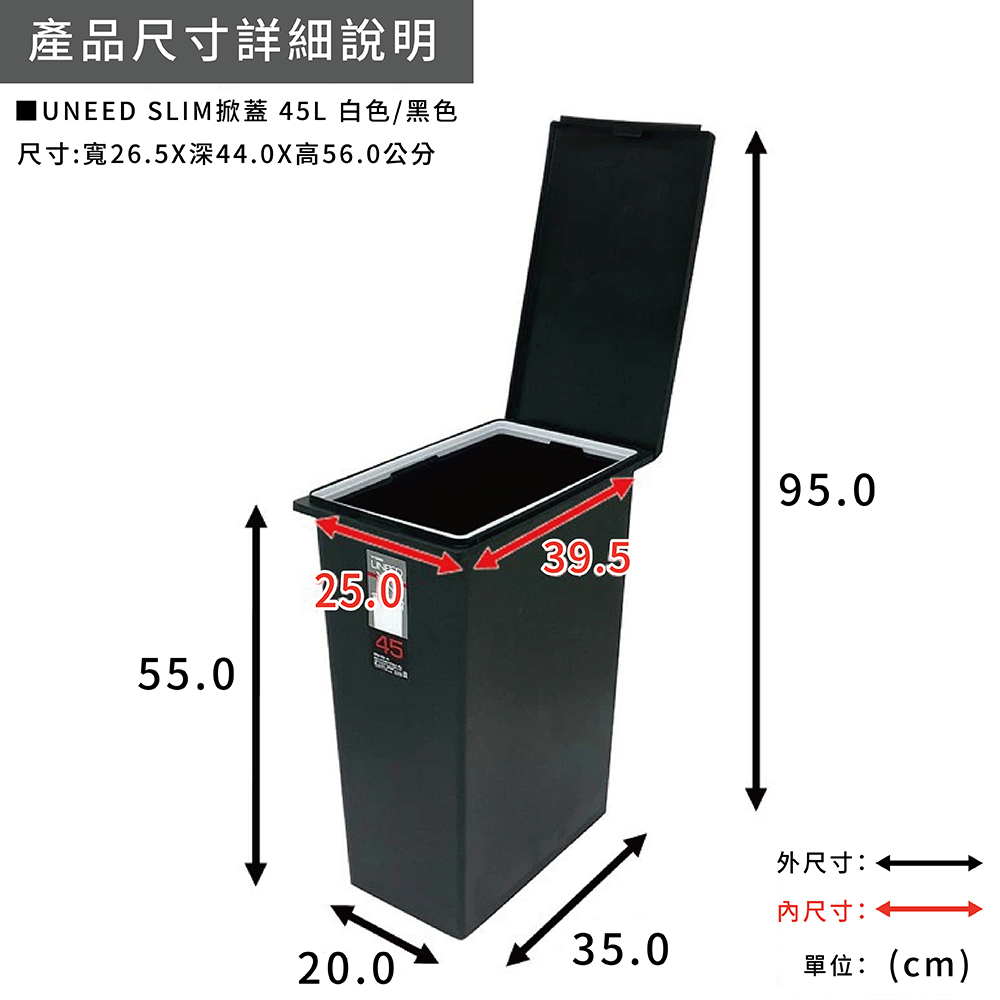 【this-this】日本TONBO|UNEED系列SLIM掀蓋垃圾桶45L
