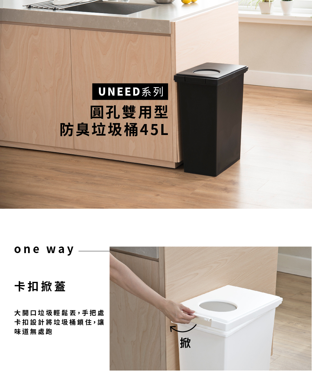 【this-this】日本TONBO|UNEED系列圓孔雙用型防臭垃圾桶 45L