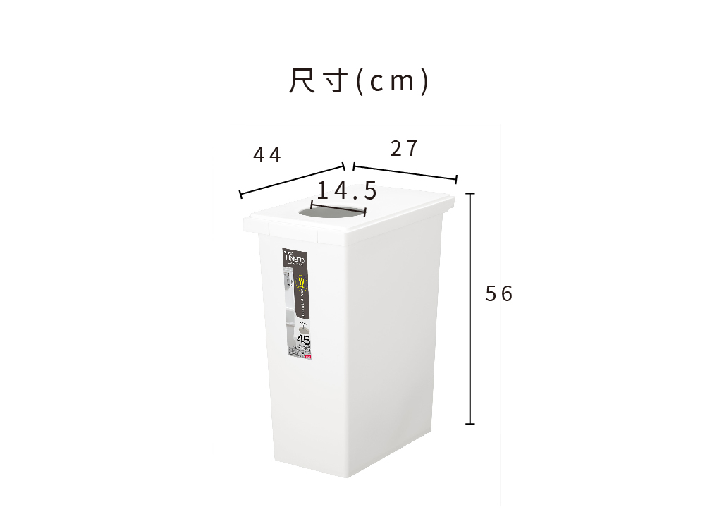 本體尺寸:(約)寬27×深44×高56cm材質:聚丙烯、不銹鋼、矽氧樹脂重量:1.39kg容量:45L原產地:日本