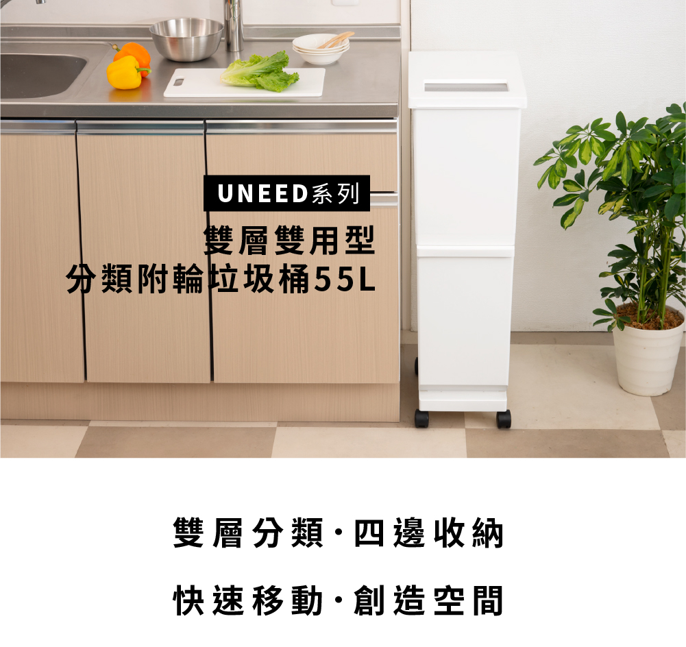 【this-this】日本TONBO|UNEED系列雙層雙用型分類附輪垃圾桶55L