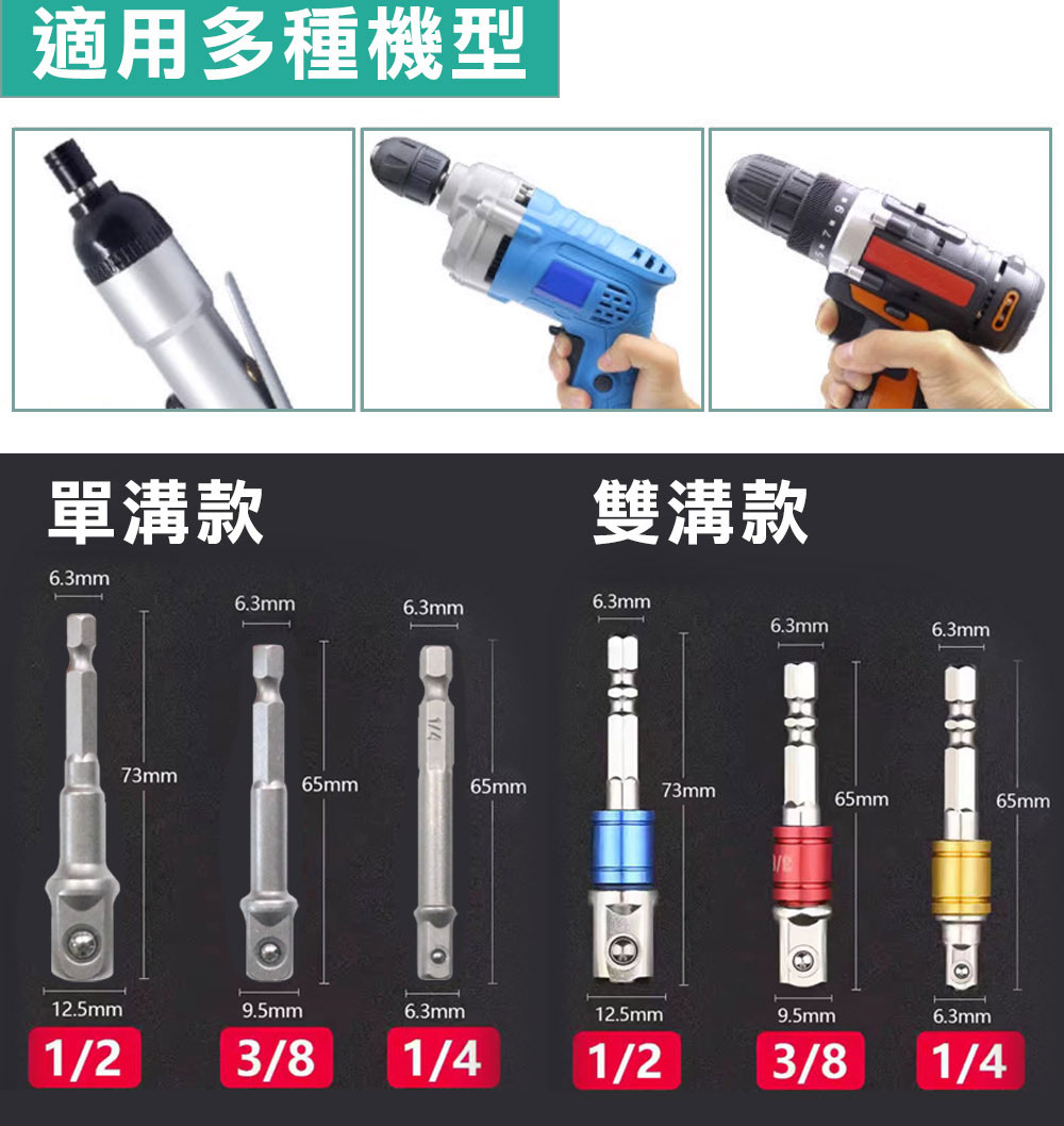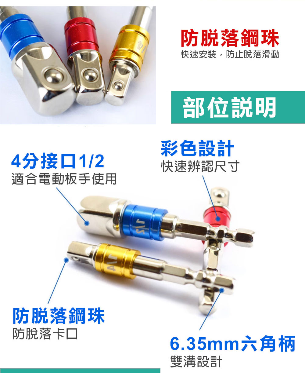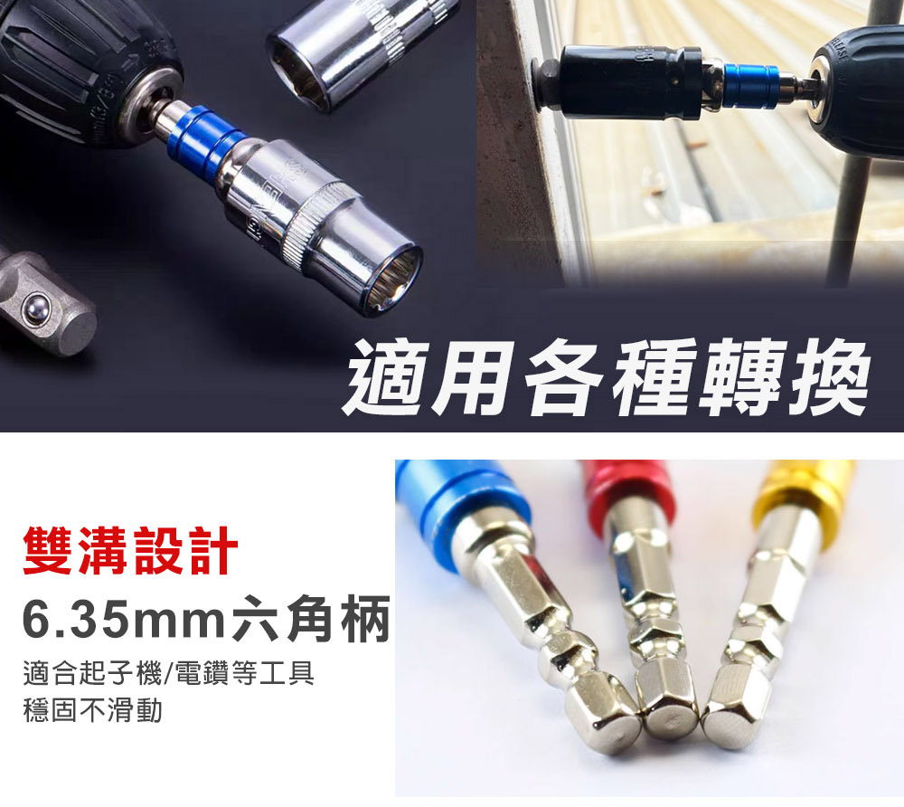起子變換接桿 彩色套圈 2分 3分 4分 1/2 3/8 1/4 起子套筒轉接頭 6.35六角轉套筒