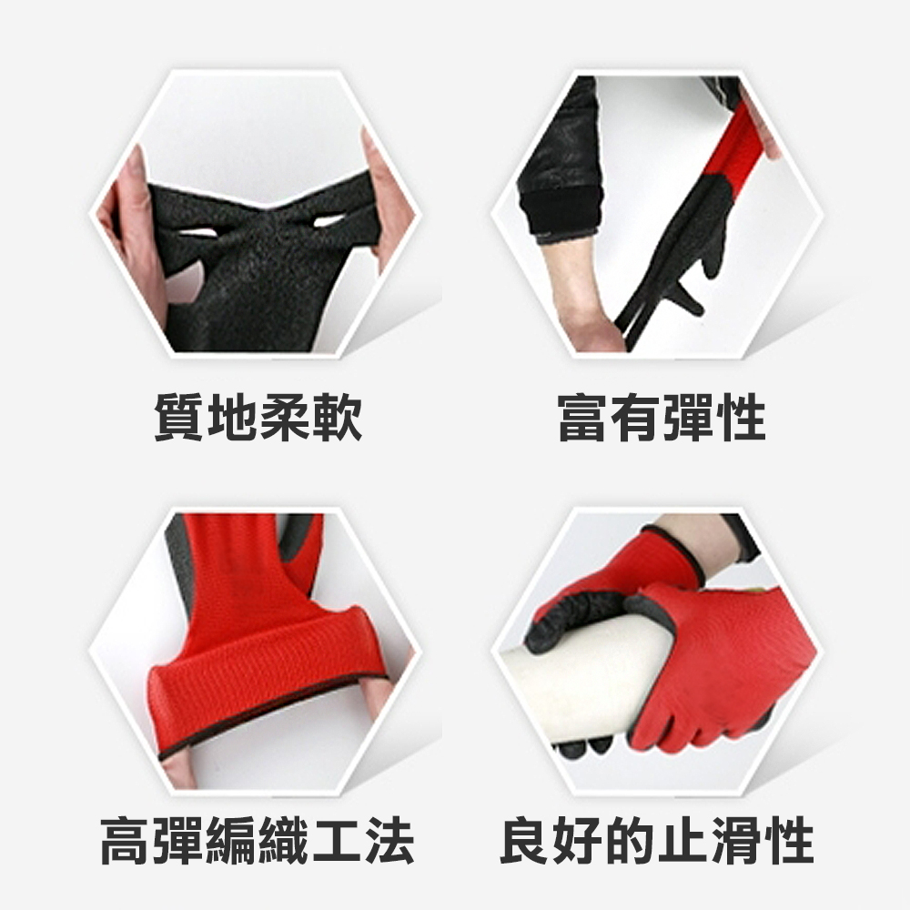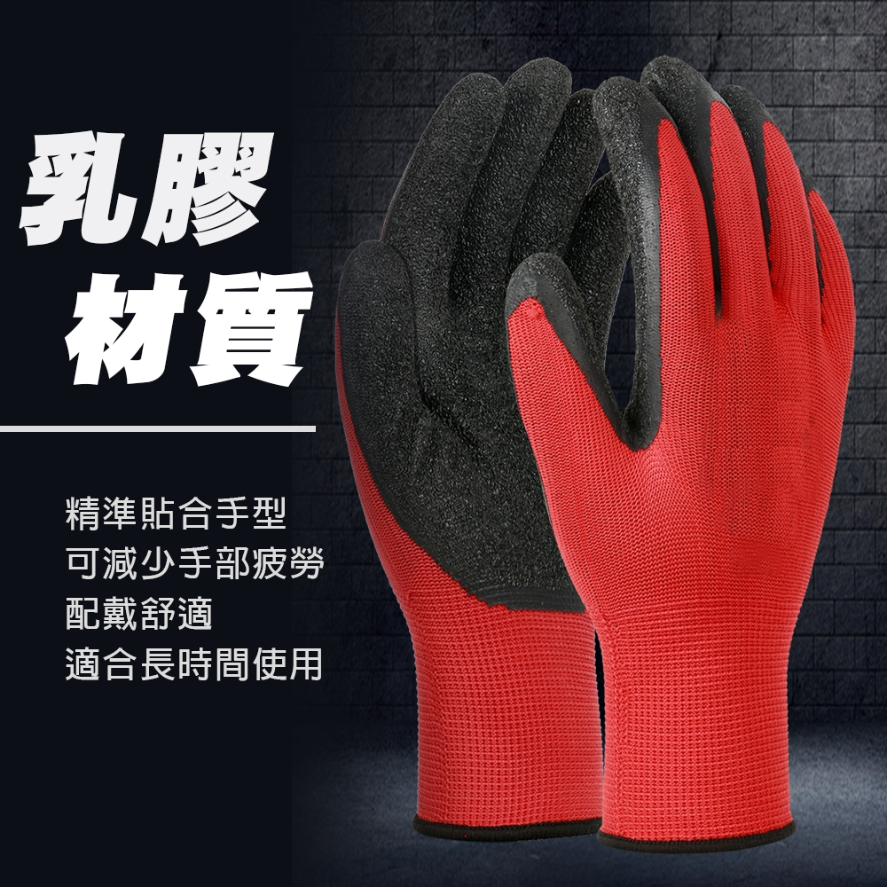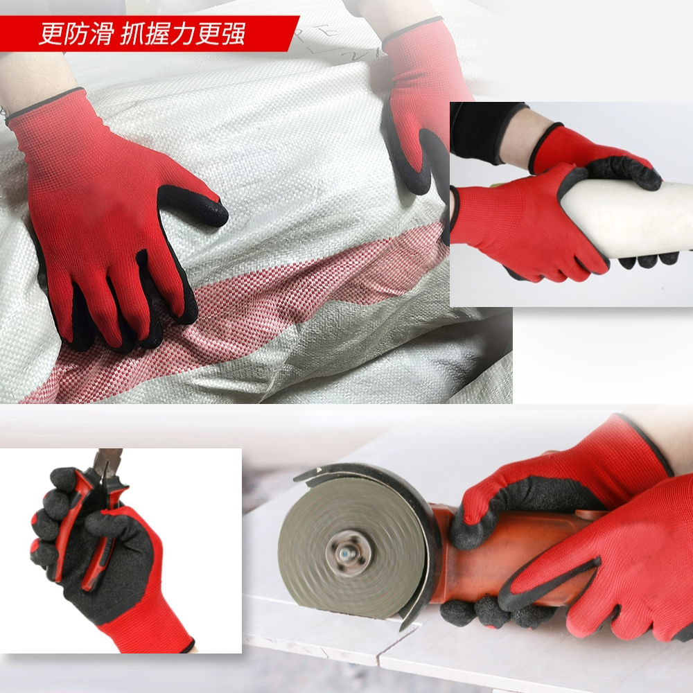 止滑耐磨乳膠手套(強力紅) 工地搬運 園藝 修繕 清潔 勞保 家用 舒適透氣 CE認證 防滑耐磨