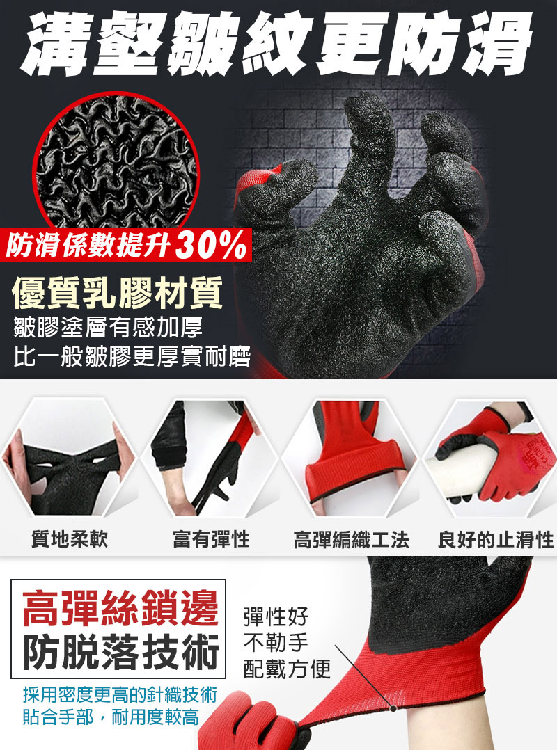 🏷 品名:13針乳膠皺紋手套