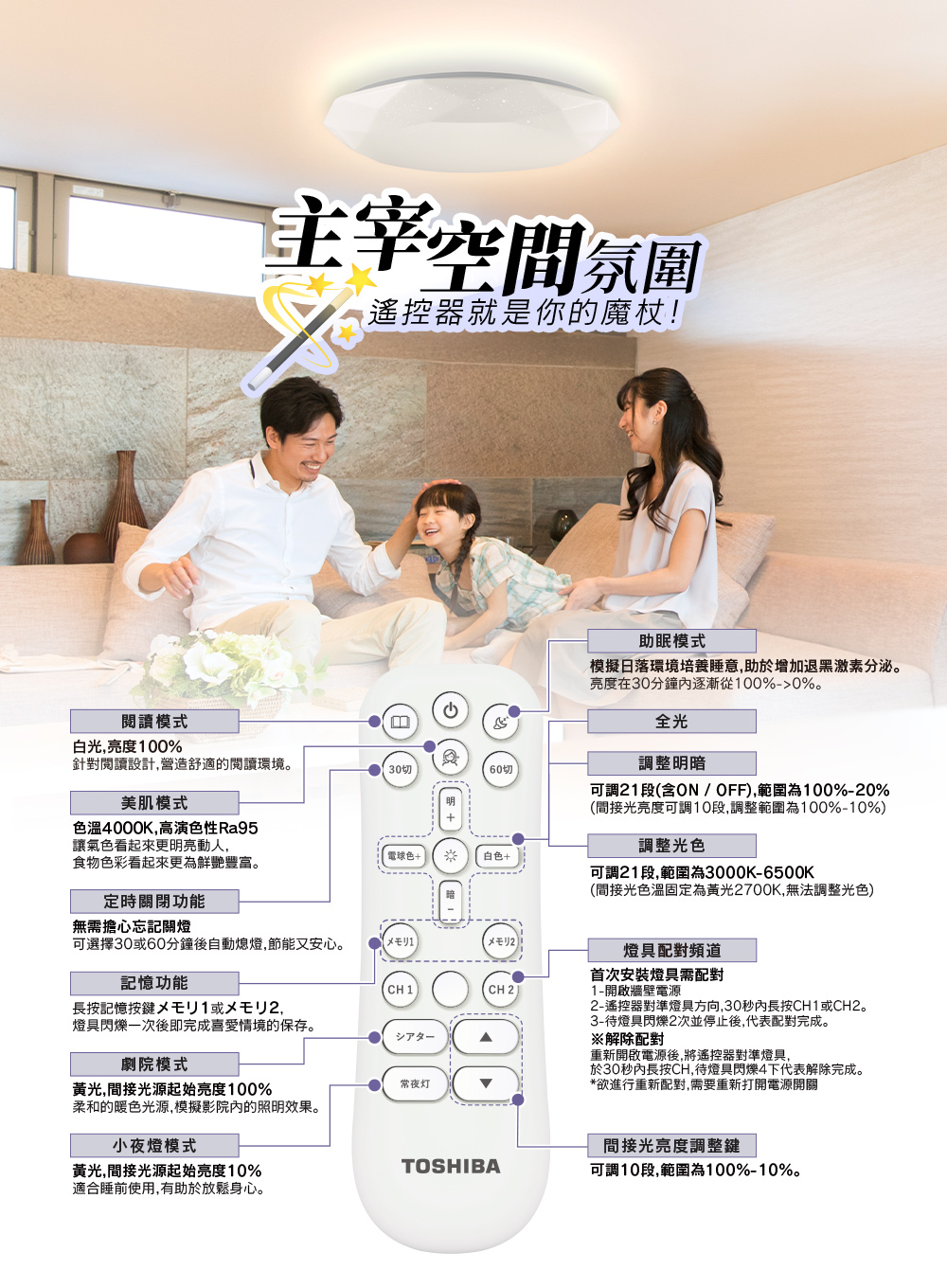 TOSHIBA東芝 8-10坪 耀陽80W RA90極光美肌 RAP調光調色遙控吸頂燈(LEDRAP80-02S)
