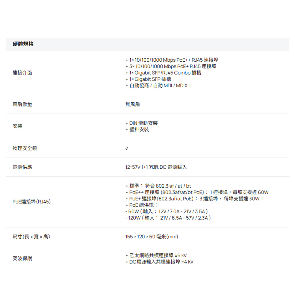 120W 總供電* 每個 PoE++ 連接埠高達 60W