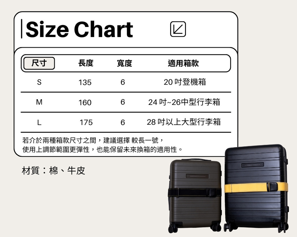 L→長160X寬6 cm 適合28吋以上大型行李箱