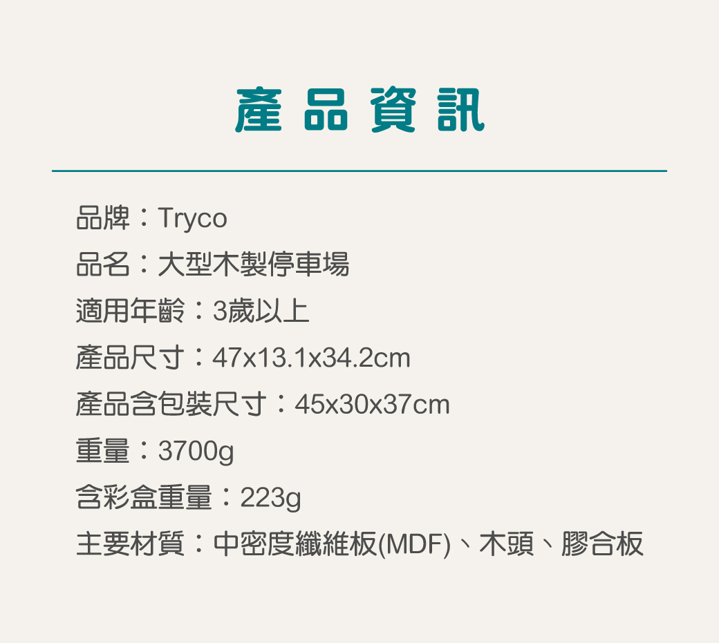 官方直營-僅限宅配【Tryco】大型木製停車場