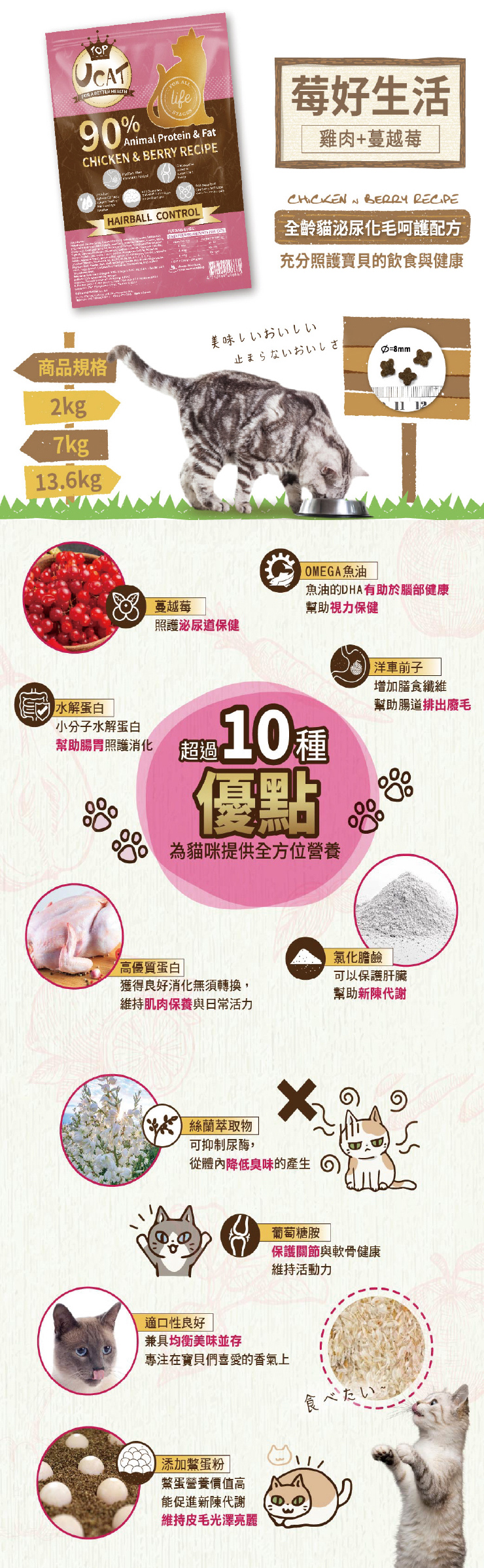 【UCAT】全齡貓腸胃泌尿呵護配方-雞肉+糙米/雞肉+蔓越莓 各一包(2Kg/包)