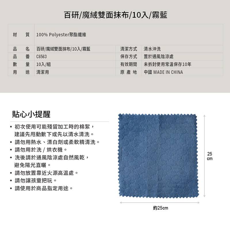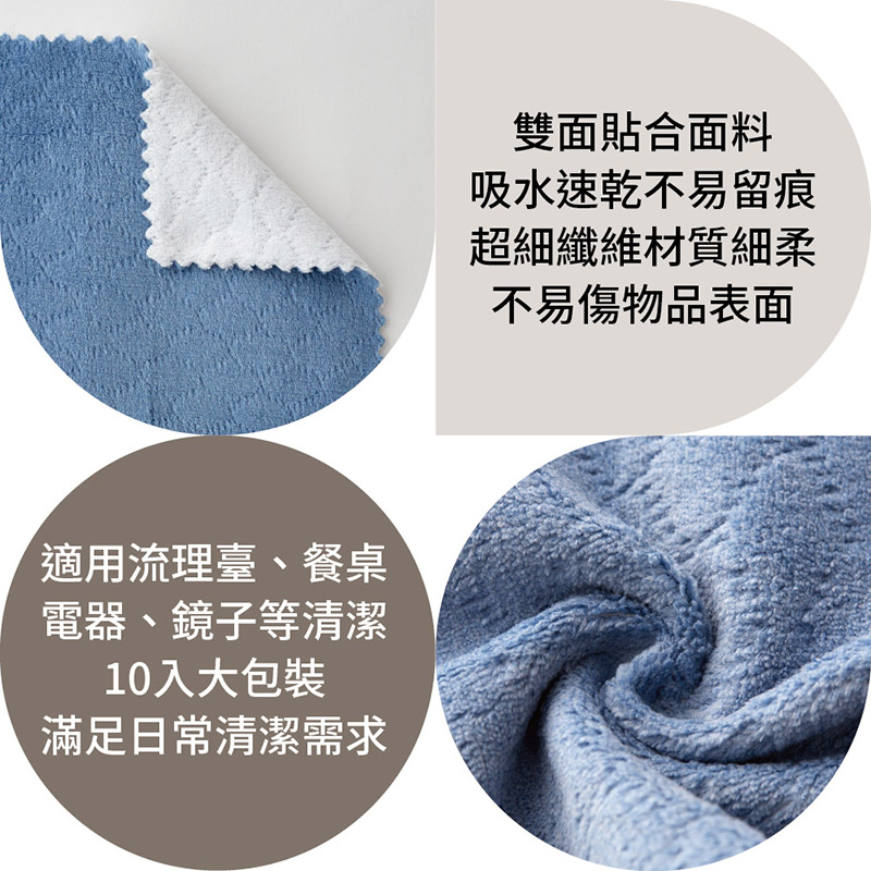 百研魔絨雙面抹布10入-霧藍