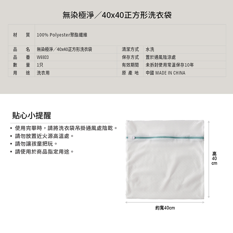 無染極淨正方形洗衣袋-40x40cm