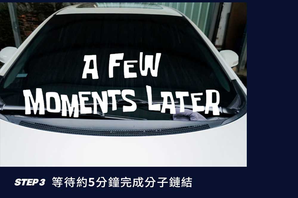 1.徹底清除擋風玻璃的油膜,並完全擦乾。2.首選使用【VANGUARD 油膜去除劑玻璃重垢歸零膏】。3.正確去除玻璃上油膜後,將單入玻璃鍍膜巾撕開。4.立即將超級氟素玻璃鍍膜巾均勻塗佈在玻璃上。5.以直線雙向均勻塗抹在擋風玻璃上。6,約五分鐘,讓超級氟素潑水劑乾燥,即可完成潑水鍍膜分子鍵結結構。7.最後使用擰乾後的超細纖維布擦拭,使擋風玻璃透亮即完成。