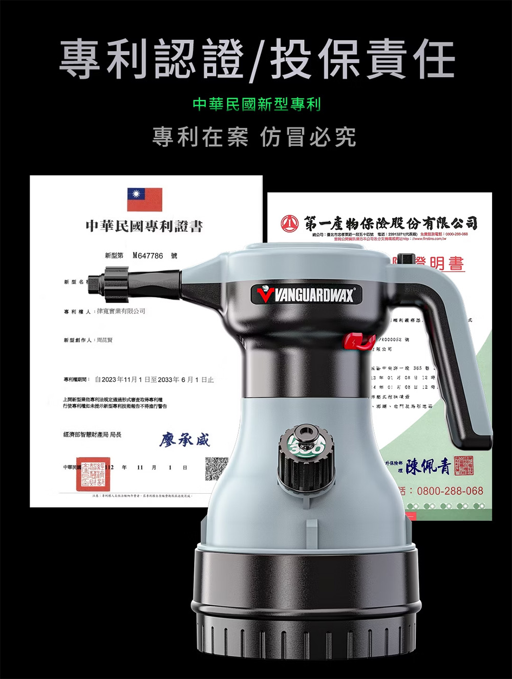 【注意事項】1.操作本機請明確注意指示燈顯示工作狀態。2.因本機內存有氣體壓力,壺蓋及加液口需擰緊以免漏氣,若有漏氣現象,請檢查密封圈是否鬆脫變形或未擰緊。3.本機充電電壓為DC5V,絕不能使用與其電壓不符的電源進行充電;電池充滿後請立即卸除插頭,不要長時間處在充電狀態中。4.使用過程中如發現機器一直加壓不會停止,應立刻關閉電源,以免壓力過大造成機器損壞。5.禁止使用有毒和有腐触性的液體進行噴灑作業(如酸洗劑、鐵粉劑、強酸鹼洗劑、易燃液體)。6.壓力壺內存有液體時,禁將本機器倒置存放。7.請勿讓兒童獨自使用本機器;勿對動物及人類五官進行噴射。8.每次使用完,請務必將機器洩壓,並清空壓力及壺內的液體。9.電池請勿長時間充電且盡量將電池保持在有電的狀態。鋰電池若沒電,又長時間放置無使用、會導致鋰電池因為電量過低而失效不能再使用。10.顯示(紅燈)時表示電力不足或可能有故障未排除。(請洽客服)。11.本產品已投保第一產物保險公司產品責任險新台幣2400萬元(保險金額非為理賠金額)。12.註冊線上保固後,馬達、電池非人為因素損壞享一年與三個月保固。