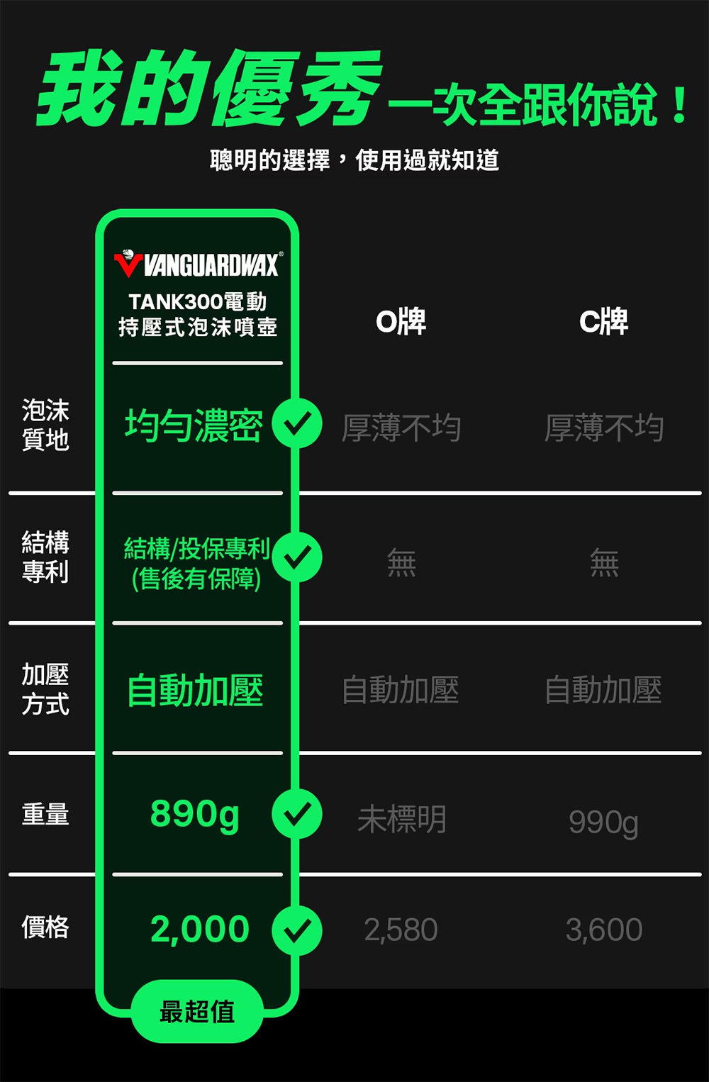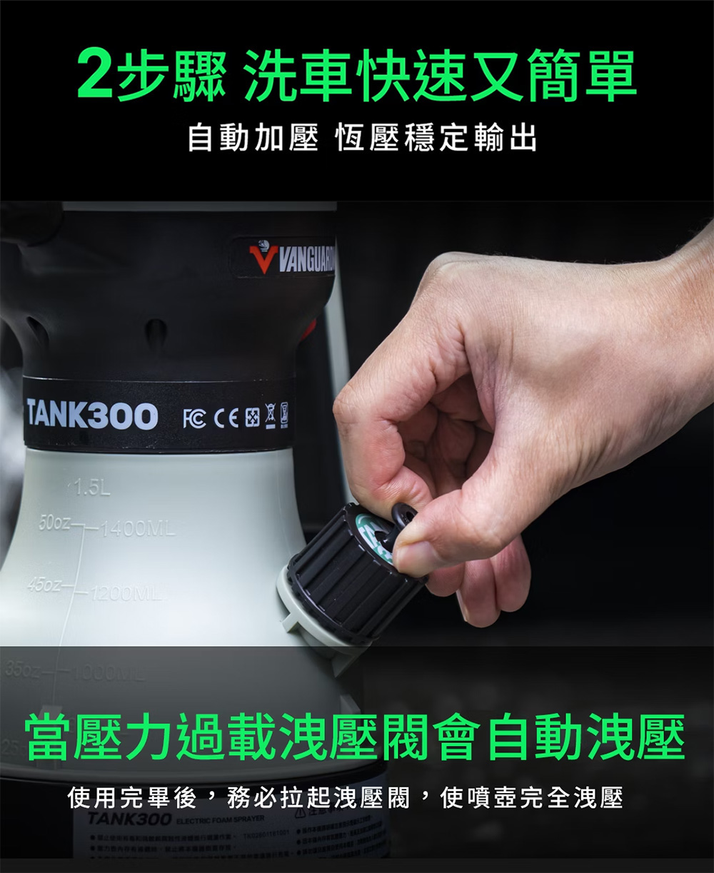 VANGUARD 坦克電動持壓式泡沫噴壺 TANK300