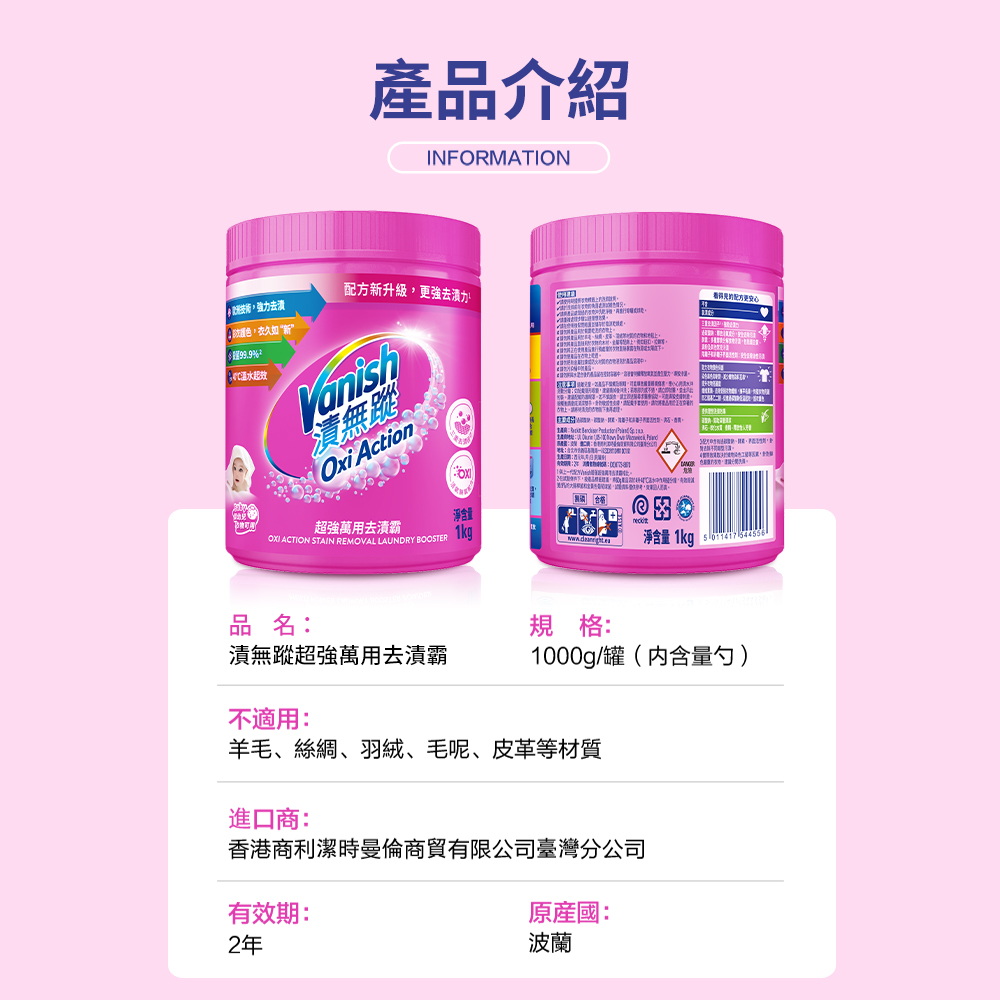 [Vanish 漬無蹤] 碧蓮第二代超強萬用去漬霸1000g(配方升級/彩漂/去污殺菌護色/不含漂白水螢光增白劑)3入組