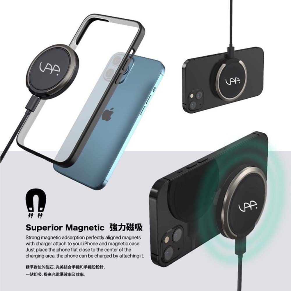 .強力磁吸:精準對位的磁石,完美結合手機和手機殼設計,一貼即吸,提高充電準確率及效率。