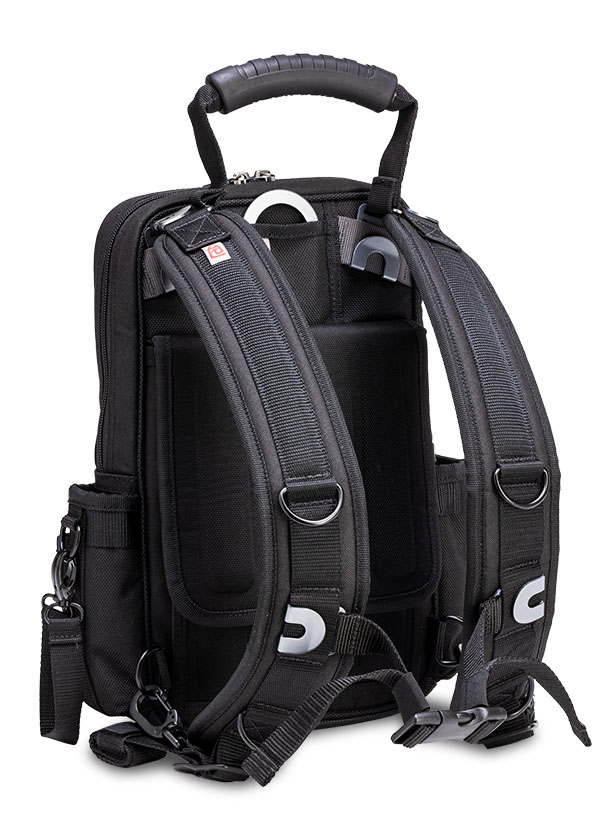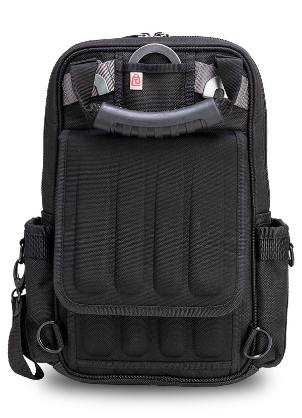 MB3 BLACKOUT 是一款「黑色」大型緊湊型斜挎式儀表包,配有可拆卸的斜挎帶和可拆卸的手提把手,因此您可以選擇用作斜挎包或隨身攜帶。可實現大型儀表的儲存、運輸和保護。主托架設計用於數位歧管、高達 13.5 英吋(34 公分)的儀表和/或一些精選手動工具。背面和內部口袋可存放無線探頭。 可拆卸背包帶單獨使用,用於將 MB3 Blackout 轉換為小型緊湊型背包。
